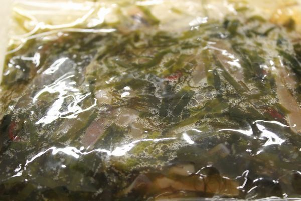 | 函館産の美味しいいかと今話題のがごめ昆布を唐辛子でピリ辛に仕上げました。 |