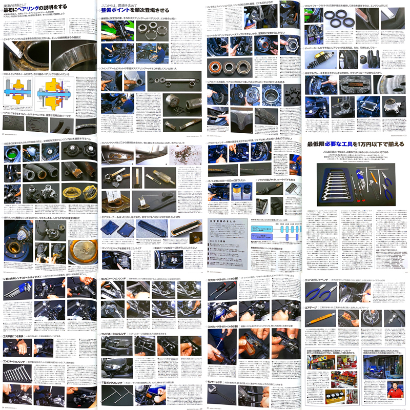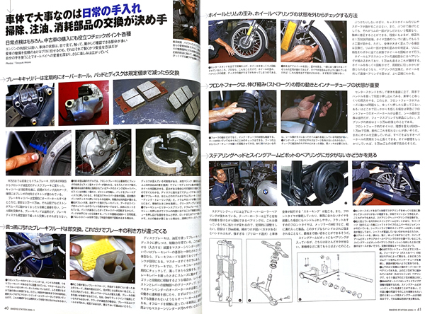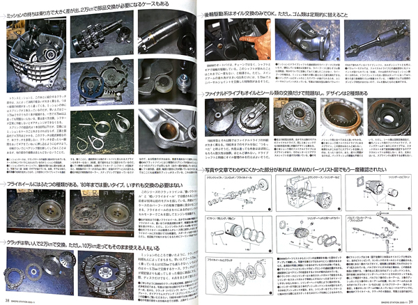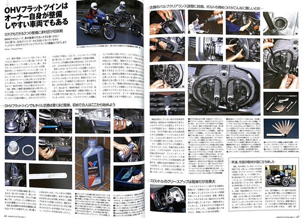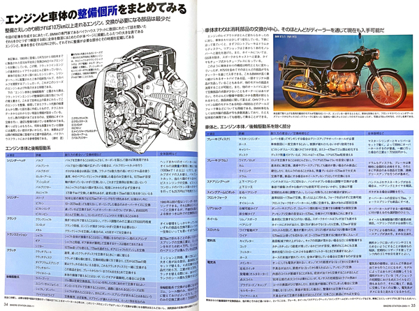 「BMW OHVフラットツイン車の整備」特集が16ページ掲載されている雑誌です。 1969~1995のR50/5 R60 R65 R75 R75/5 R80 R90 R90S R100 R100RS R100R R100GSに応用できます。 …………………………… ---●BMW OHVフラットツイン車(1969〜1995)の整備16ページ 〜教えてくれたのは、フラットを社名とするBMW専門店のプロ ◎エンジン車体の整備箇所をまとめてみる 〜整備次第では10万km以上 ◎OHV水平対向は丈夫で長持ち。その気になれば一生乗れる 〜ヘッドまわり、バルブ当たり面の修正 〜10万km走ってもピストンそのままでリングだけ交換 〜カムシャフトとプッシュロッドも10万キロでは交換不要 〜オイル交換さえしっかりやればクランクシャフトもコンロッドも半永久 〜ミッションの持ちは乗り方次第、2万キロで交換のケースも 〜フライホイールには二つのタイプがある 〜クラッチも乗り方次第では10万キロ 〜後輪駆動系はオイル交換だけでOK、ゴム類は要交換 〜ファイナルドライブもオイルシール類の交換だけで問題なし ◎車体で大事なのは日中の手入れ。掃除、注油、消耗部品の交換が決めて 〜ブレーキキャリパーは定期的にオーバーホール 〜真っ黒のブレーキフルードは即交換 〜ホイールとリムのゆがみベアリングの状態を外からチェック 〜フロントフォークは、伸び縮みの際の動きとインナーチューブの状態が重要 〜ステアリングヘッドとスイングアームピボットのベアリングにガタがないかチェック ◎完全整備+αのR80を味わう ◎OHVフラットツインはオーナー自身が整備しやすい車輌でもある 〜オイル交換は驚くほど簡単 〜念願のバルブクリアランス調整に挑戦。ボルトの締めつけがこんなに難しいとは 〜スロットルグリースアップは簡単だが効果絶大 ---●オートバイの整備と修理14ページ …………………………… ○ 20年以上前のバイク雑誌BS、一冊の出品です。 ○ 細かい発行年などの質問はご容赦ください。 ○ 程度は多少のスレがありますが大きな傷み等はありません。 よろしくお願いいたします。218 250715 |