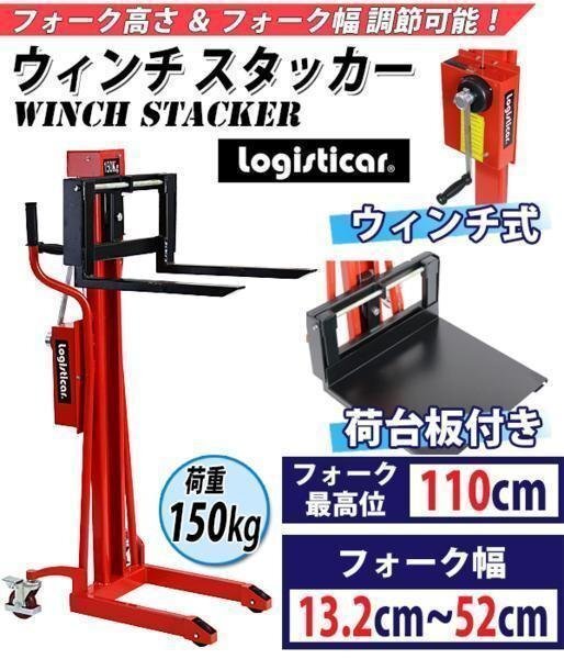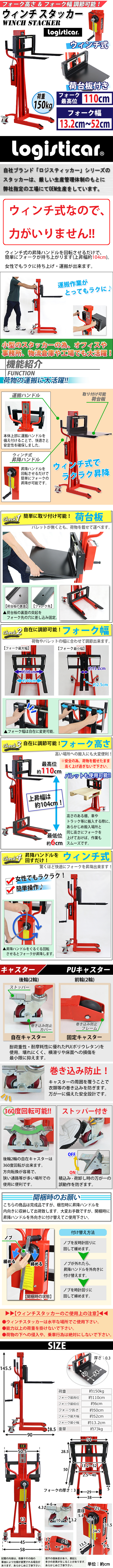 | 商品名 | 送料無料 新品 ウィンチスタッカー 小型 昇降 最高位110cm 150kg フォーク長さ50cm 幅13.2~52cm 荷台板付 赤 ハンドフォークリフト ハンドリフト ハンドパレットトラック ハンドリフター ハイアップ ハイリフト 1100mm 500mm stacker150hj |