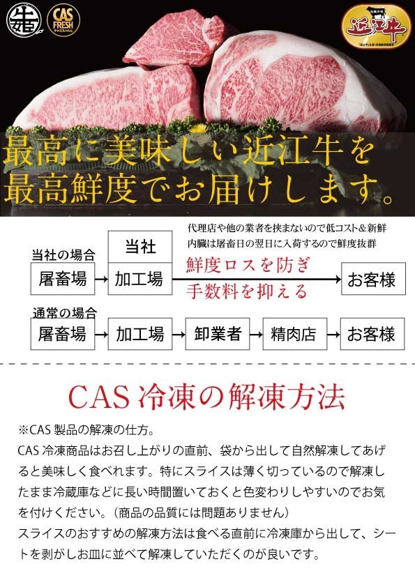 【賞味期限】 3か月以上の商品をお届けいたします。 ※解凍後はなるべくお早めにお召し上がりください。 【原材料名】 牛肉(近江牛) 【アレルギー物質】 牛肉 |