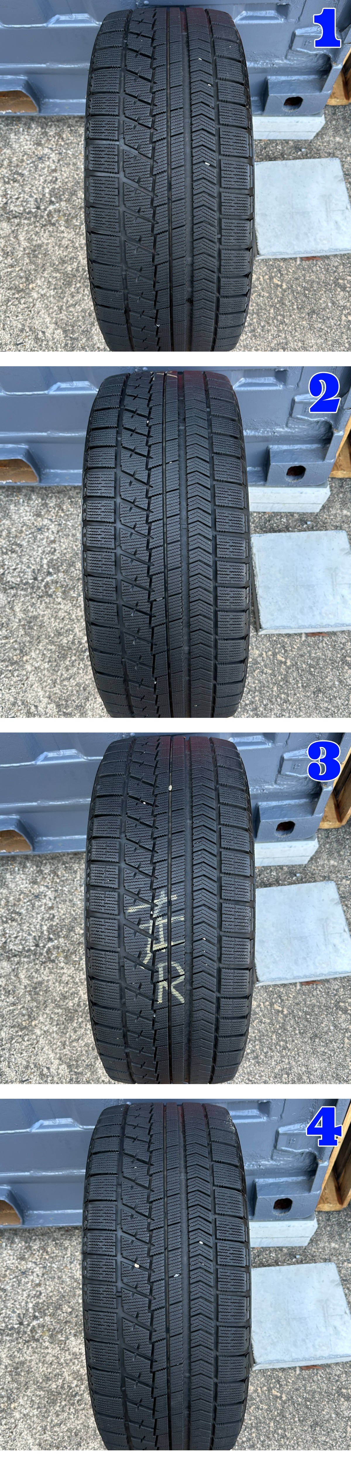 BRIDGESTONE BLIZZAK RFT 245/50R19スタッドレスタイヤ付き4本セットの出品です。 タイヤの製造年は2021年製になります ![]() powered by auction-labo.com 社外 ★ホイールのサイズ 19x8J 5H120 オフセット +25 ハブ径約60.1mm ★ホイールの状態ですが4本とも大きく気になる箇所がなかった為ディスク面を3分割+センター部分の画像をそれぞれアップで撮っていますので状態などご確認ください。もしかしたら多少写っていない箇所もあるかもしれませんので全体の雰囲気としてお考えください。 あくまで中古品ですので画像では分かりにくいキズや汚れなどございます。 適合車種 2017-2025y レクサス LS500 VXF50/55型 2017-2025y レクサス LS500h GVF50/55型 ★タイヤのメーカー BRIDGESTONE BLIZZAK RFT スタッドレス ★タイヤサイズ 245/50R19 ★製造年 1本目 2021年40週 2本目 2021年39週 3本目 2021年40週 4本目 2021年40週 ★タイヤの溝 1本目 約7.4mm / 2本目 約7.5mm / 3本目 約7.4mm / 4本目 約7.3mm ※上記数値はタイヤのセンター部分で計測 ※経過年数による経年劣化や若干の片べりが見受けられますので画像をよく見て判断してください。 ★エアー漏れやパンクはありません。 ※あくまでも中古品ですので、画像をよく見て参考にして判断してください。(携帯等でご覧の方は必ずご入札前にパソコンで画像をご確認ください) ※気になる事があればご質問よりお気軽にお問い合わせください!! ★ガレージYAMADA(株式会社YAMADA) 愛知県津島市百島町字三正六歩29-2 TEL 0567-28-4649 FAX 0567-28-4749 定休日 日曜日 営業時間 午前10時~午後19時 インスタ 【 garage_yamada_official 】 ブログはこちらをクリック!! 【管理番号】YAM-5H120-01 注意事項 |