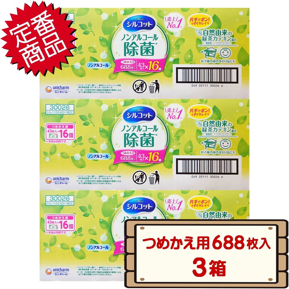 | 商品名 | コストコ ユニ・チャーム シルコット ウェットティッシュ ノンアルコール 除菌 無香料 詰め替え 688枚入×3箱 |