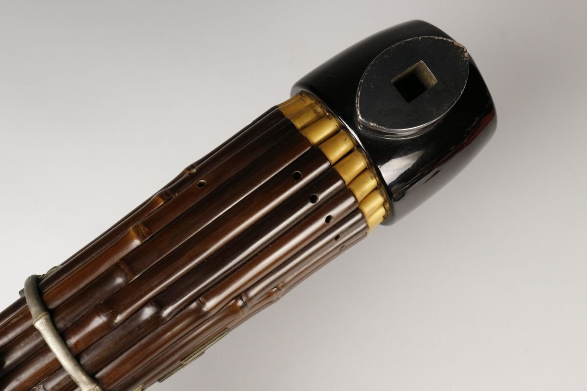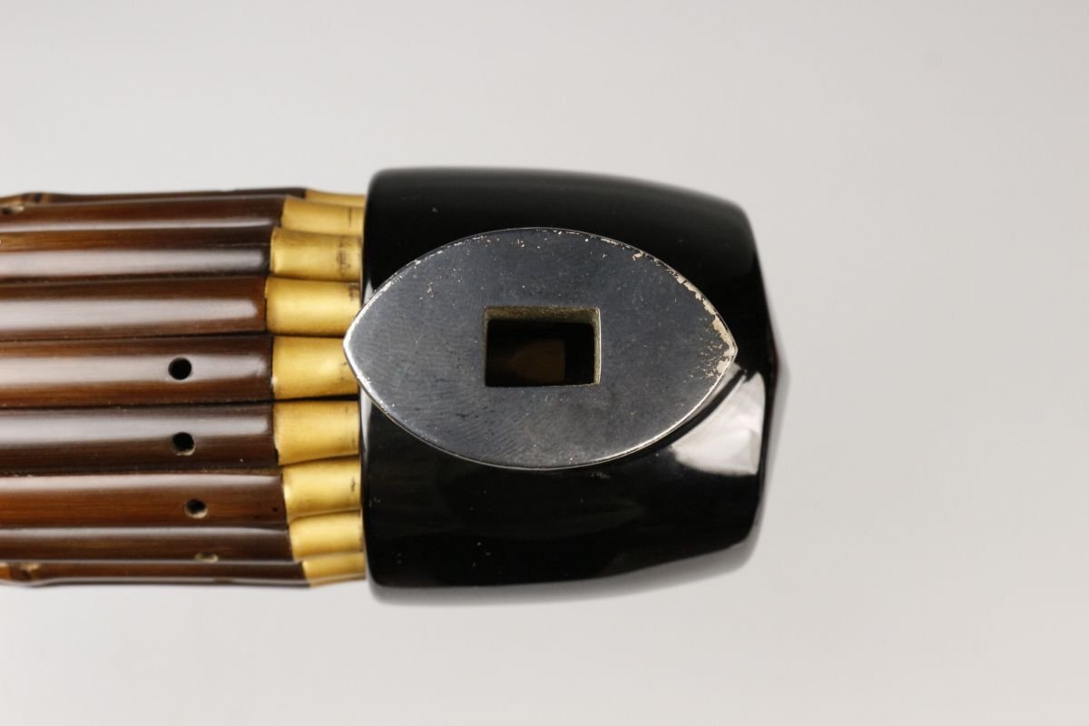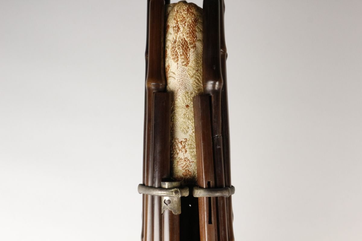 [.UT]25.11 25111611A* * * 商品詳細 * * * ここでしか出逢うことのできない唯一の美をご紹介させて頂きます。 時代雅楽器 煤竹黒漆塗 笙 悠久の歴史とともに受け継がれてきた雅楽の響きを、静かに、そして気品高く伝える一品です。 本品は、長年の歳月を経て独特の深みを帯びた煤竹を用い、黒漆を丁寧に施した、格調ある仕上がりが魅力。漆の艶やかな輝きと竹の自然な風合いが絶妙に調和し、時代楽器ならではの存在感を放ちます。 祭祀・舞楽・演奏会はもちろん、鑑賞用としても高い美術的価値をそなえています。 優れた保存状態と、雅楽器としての品格をしっかりと感じさせる逸品。 雅楽を愛する方はもちろん、和楽器の美に惹かれる方にもおすすめのお品です。 ■サイズ/横6.5㎝×高46㎝×奥行8㎝ ■状態/ スレ、傷、汚れ、直しがございます。 ※直しがあるため動作は不明です。 ※直しの部分が取れやすくなっております。 ※写真にてご確認、ご了承の上ご入札下さい。