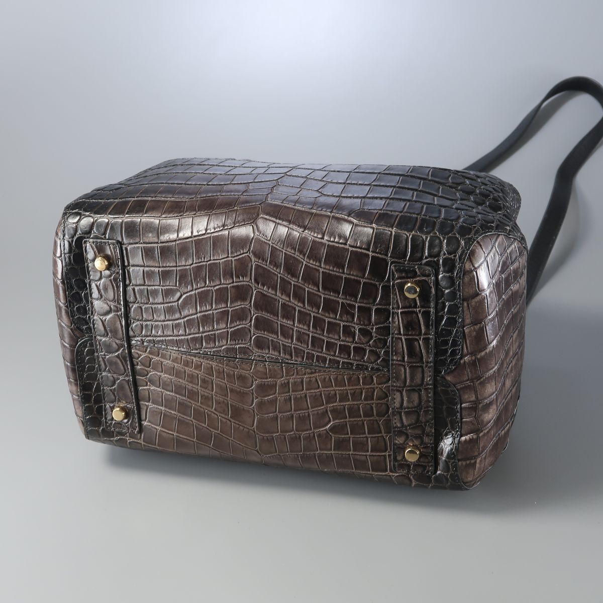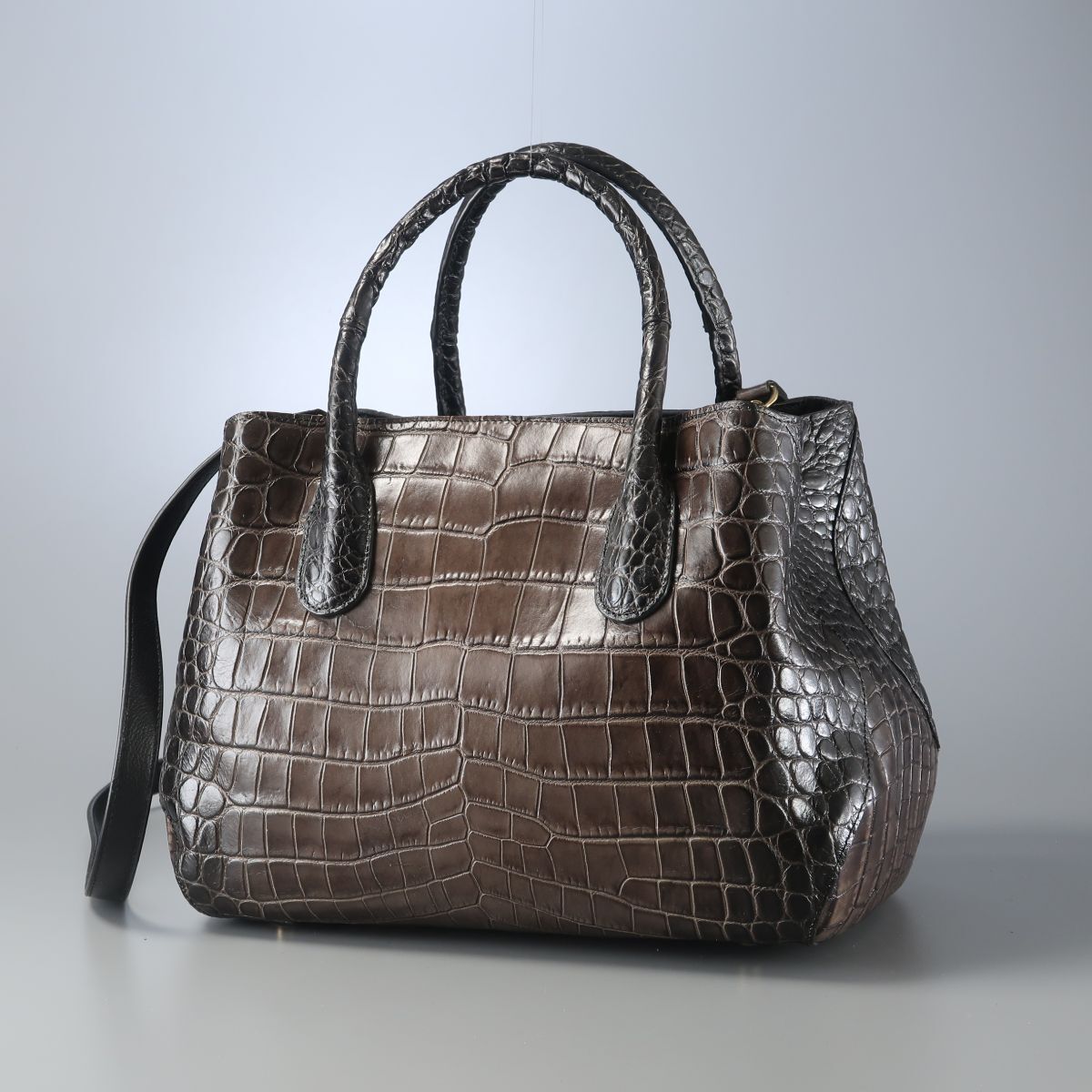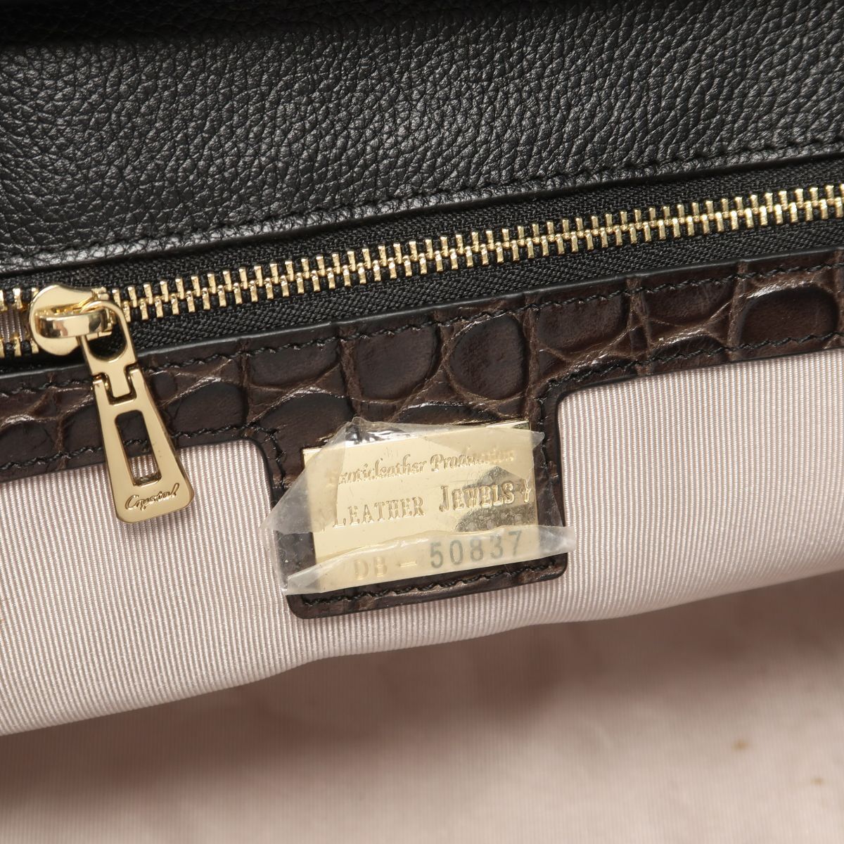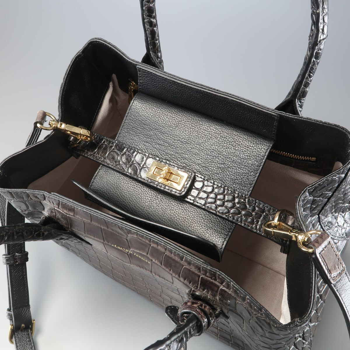 | TJ6867▲LEATHER JEWELS レザージュエルズ メルディアナ クロコ型押しレザー 本革 2way トートバッグ ショルダーバッグ 鞄 茶×黒系 | |||