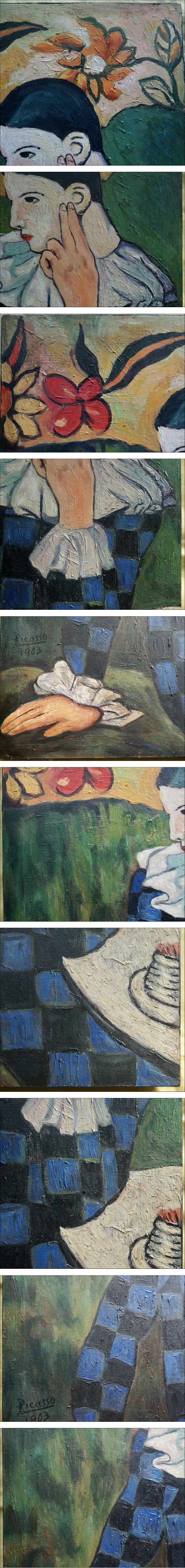 | 商品説明 | パブロ・ピカソの油彩/キャンバスの肉筆原画です。ピカソは青の時代に数多くのアルルカン(道化師)を描いています。出品作品は1903年に描いた「肘をつくアルルカン」です。似た作品が1901年に描かれています(油彩/キャンバス、82.8 x 61.3 cm)。左下にサインと1903(制作年)が書かれています。裏面に南米ベネズエラの老舗美術館「カラカス現代美術館」の認証票(作品概要を記載)があり真作であることを示しています。 制作年:1903年 サイズ:約60 x 40cm ***重要!額縁代金のうち5000円を補助!即決購入は額縁、送料とも無料!*** 「額縁は自分で選びたい」「同じサイズのを持っているので額縁は不要」などの声がこれまで多数ありました。その要望に答えて出品作品に額縁は付きません。額縁が不要な方はそのまま作品のみを購入してください。落札者で額装を希望する落札者は、以下のいずれかを選択してください。 (1)当方取引先の額縁専門店「マルニ額縁店」(栃木県)がHPで販売している中でお好きな額縁を選ぶ (2)写真掲載した額装例3点のうちお好きなものを選ぶ (3)当方にすべて一任する いずれでも購入金額のうち5000円を当方が負担します。なお、サイズや装飾などによって額縁の金額はピンからキリですが、この作品のような約40x60cmの場合は標準的なもので29000円ほどになります。この金額から5000円をお引きします。したがって落札者の負担額は24000円ほどです。 また、即決で落札いただいた場合は、上記3点の額縁のうちお好きなものを無料で提供します。送料も無料となります。なお、落札後はお名前、住所等の入力と同時に、額縁の要不要や額縁選択をお知らせください。その後こちらから送料を入力しますので、それまでご入金はお待ちください。 <注意事項>**必ずお読みください。下記の事項に同意された方のみ入札してください。** ・後のトラブル防止のため、新規の方、悪い評価が全体の5%以上ある方、および落札者の都合によるキャンセル歴が3回以上ある方は入札をお断りします。入札された場合は分かり次第入札を取り消しさせていただきます。新規の方で、どうしても入札したいと言う方は、質問欄に氏名、住所、電話番号をお知らせ下さい。(回答はしないので公開はされません) ・疑念を持ったままの入札や、安易な入札・落札は絶対にしないでください。 ・万一1ヶ月以内に信頼ある美術品鑑定機関により贋作と判定された場合は当方で判定書類精査後に返金に対応します。書類を発行しない機関は不可です。鑑定費用は落札者の負担となります。 ・終了後、24時間以内の返信が出来て土日祭日を除く営業日3日以内にお振込み可能な方のみ入札をお願いいたします。分割払いはできません。 ・落札直後のキャンセルは一切お受けできません。 |