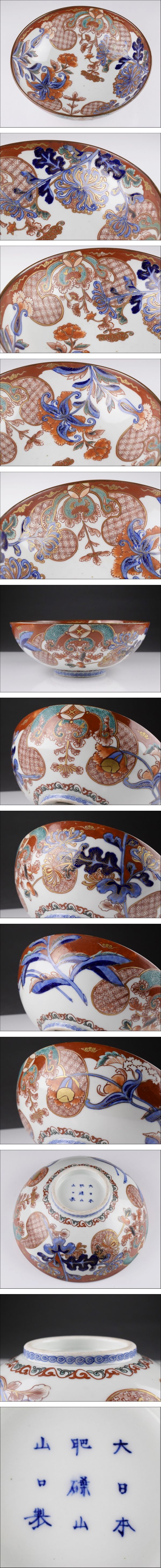| 品 名:大日本 肥蝶山 山口製 時代 金彩色絵 鉢 直径25.5㎝ 古美術品 寸 法:高さ 9.5㎝ 直径 25.5㎝ 総重量:1174g 状 態:経年による汚れあり。 | |||