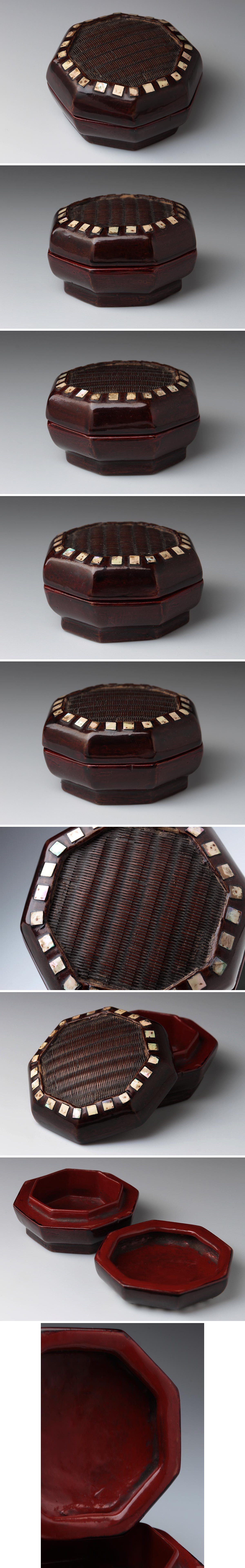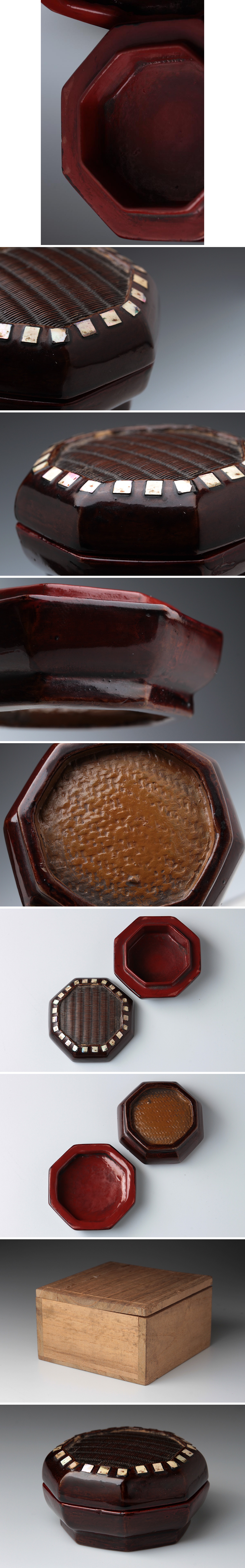| ◆ 唐物 溜塗螺鈿竹編八角香合 内朱 幅5.4cm 木箱・漆螺鈿竹絲編八方盖盒・蓋物・香盒 古玩 漆工芸 漆器 茶道具 古美術品 ◆