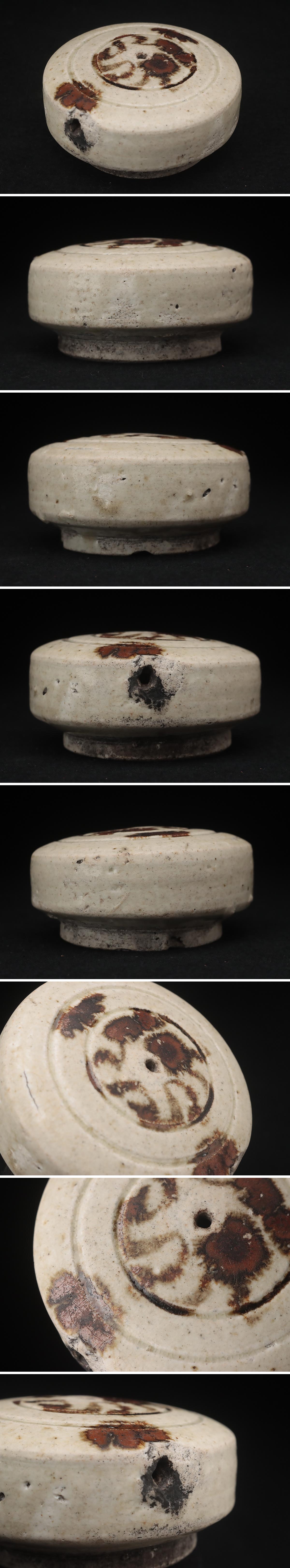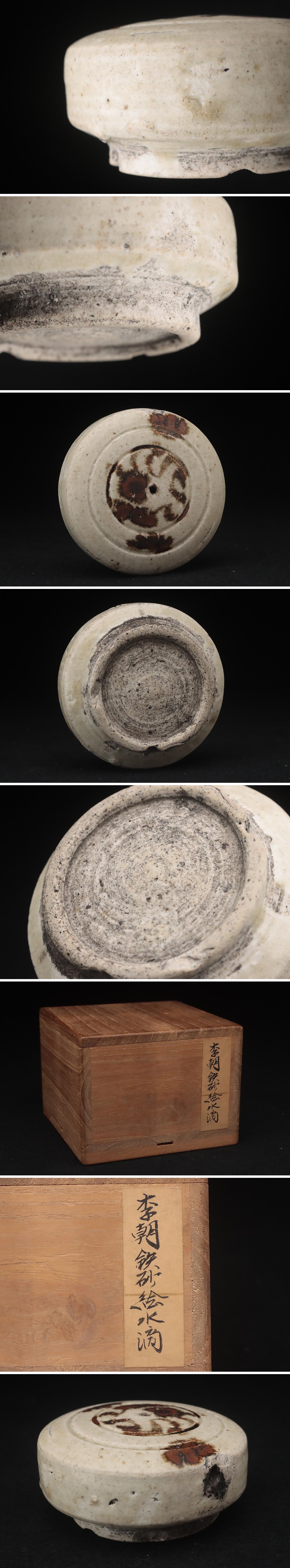 | ◆ 朝鮮美術 李朝 鉄絵 草文 丸形水滴 径7.8cm 木箱附・李朝鉄砂円式水滴・硯滴 書道具 朝鮮古陶 朝鮮古美術 ◆