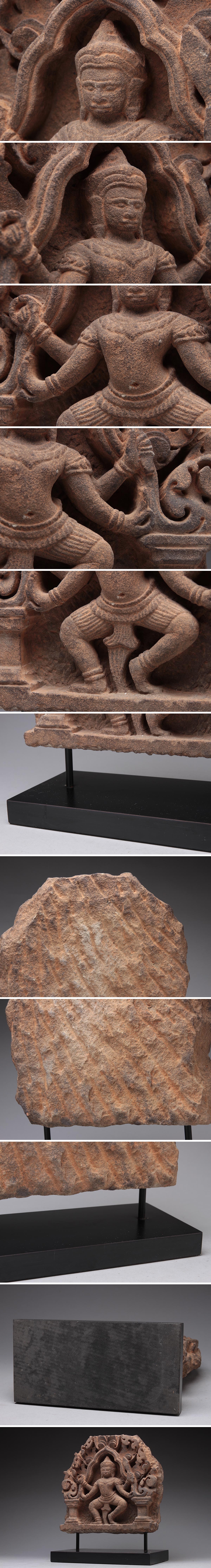| ◆ 重厚 アンコールワット 11-12世紀 石彫レリーフ「四臂ヴィシュヌ神像」台付 全高32.5cm / 重7092g・石仏・石佛 カンボジア ◆