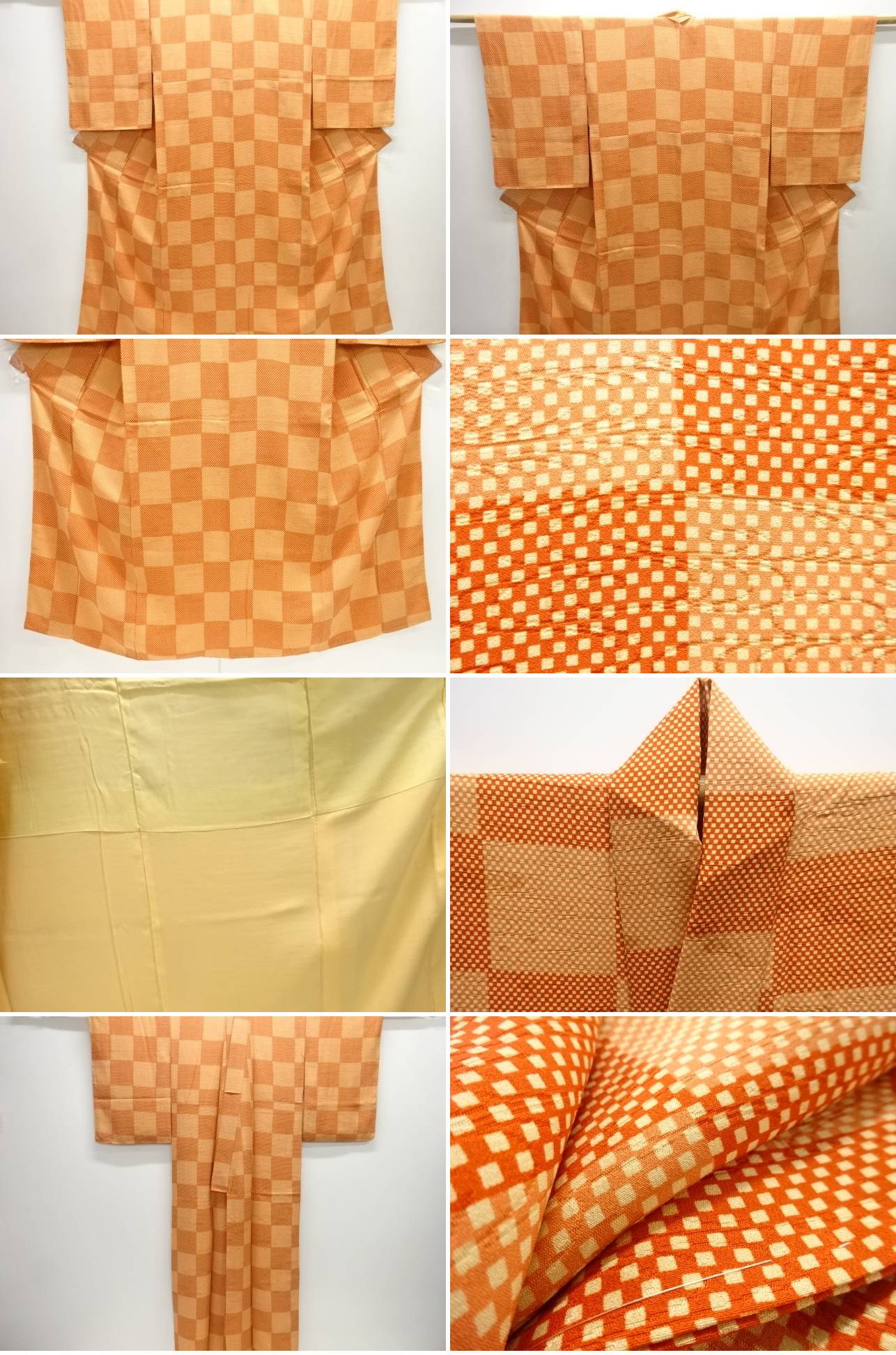 仕付け付きです。 胴裏に黄変、のりアクが有ります。 状態は大変良いです。 着用可能です。 採寸・検品:堤、岩井 撮影:北河 素材は正絹です。 地色は橙の濃淡です。 お支払い方法、送料・手数料はストア情報よりご確認お願いいたします。 全国一律1300円。11000円以上で送料無料 ※8/12より送料が変更されています。ご理解の上ご入札ください。 複数ご落札の場合で個別に発送住所がそれぞれ異なる場合は、お手数ですが、別途メールでご連絡下さい。 以前と発送先が異なる場合、別途メールでご連絡下さい。 多少の時代シミ、くすみがある場合があります。 デジタルカメラやモニターの特性により色が忠実に再現できない場合があります。 ご理解頂いた上でのご入札お待ちしております。 アンティーク商品については「不良品」扱いいたしません。 記載のない状態がある場合もございますのでご了承下さい。 ご返品もお受け致しますが、送料、振り込み手数料は、お客様負担でお願いします。 |