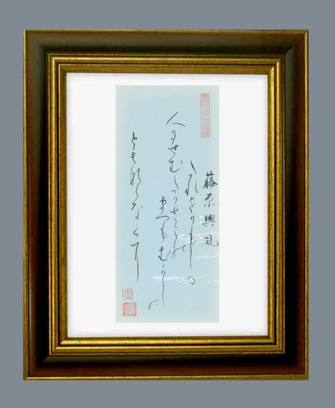 「百人一首」原本の大きさ タテ27.0センチ ヨコ11.8センチ。額縁の大きさは、タテ40.0センチ ヨコ30.0センチ。額縁は新品です。 |