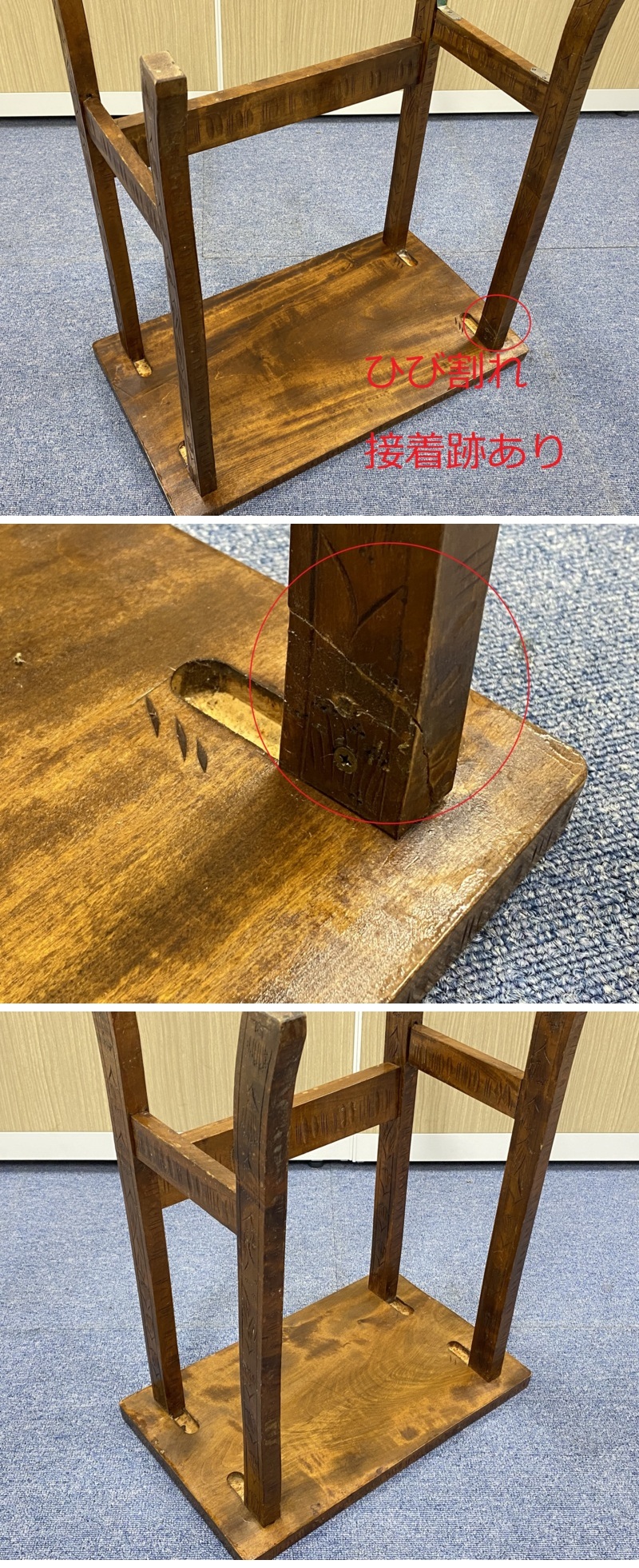 | ◇商品情報◇ | 当店の商品をご覧いただきありがとうございます!! 伝統工芸 軽井沢彫り 飾り台 2点 セット 桜彫刻 花台 飾り棚 置き台 になります。 サイズ(最大値): 幅 約42cm、奥行 約26cm、高さ 約55cm 幅 約54cm、奥行 約31cm、高さ 約59cm 経年や使用に伴うキズや汚れがございます。 若干のグラつきあり。(小) 隙間やひび割れがあり接着跡あり。(大) 状態などは画像を参考の上、ご検討をよろしくお願い致します。 送料元払いクロネコヤマト家財便での発送になります。 落札後直接、当社へお引取りも大歓迎です!積み込みはお手伝い致します。 ※目視チェックをしていますが、表記漏れや見落としや細かな擦れ・薄汚れなどがある場合もございますので予め画像をご確認の上でご入札をお願いいたします。 簡易動作確認済みですが中古家電品の寿命については個体差があるため不具合がございましたら到着後3日以内の故障や初期不具合のみの対応となります。 お品物が届きましたらお早めにチェックや動作の確認をお願いいたします。 ※発送時注意点※ 大型商品につき発送は個人・法人問わず、クロネコヤマト家財便で発送となります。 大きい商品になりますので離島など一部輸送できない地域もありますので心配な方は事前にクロネコヤマト家財便にお問い合わせ下さい。 ※気持ちよくお使い頂けるように簡易ですが清掃済みです。取りきれない汚れなどはご容赦下さい。 | ||||||||||||