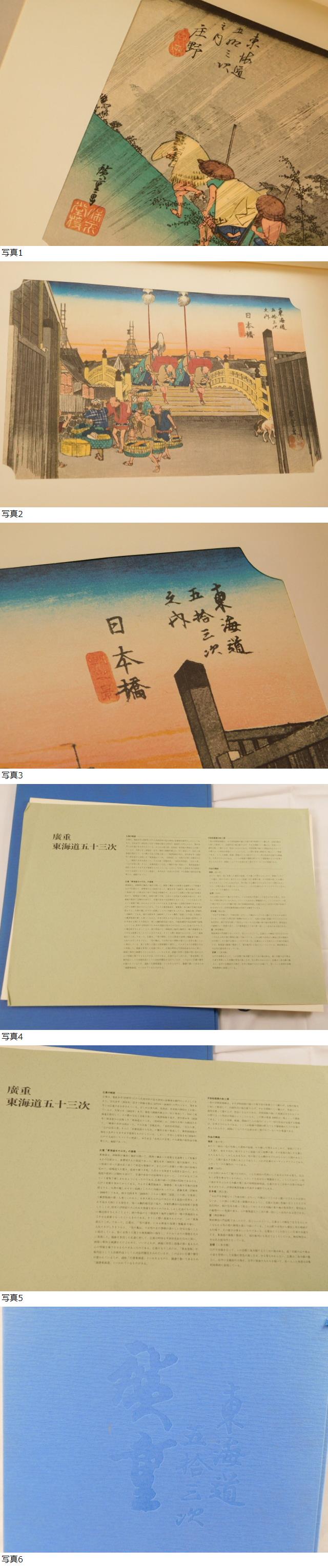 【内容】複製画、広重の略歴・作品解説・浮世絵版画の彫と摺についての解説書