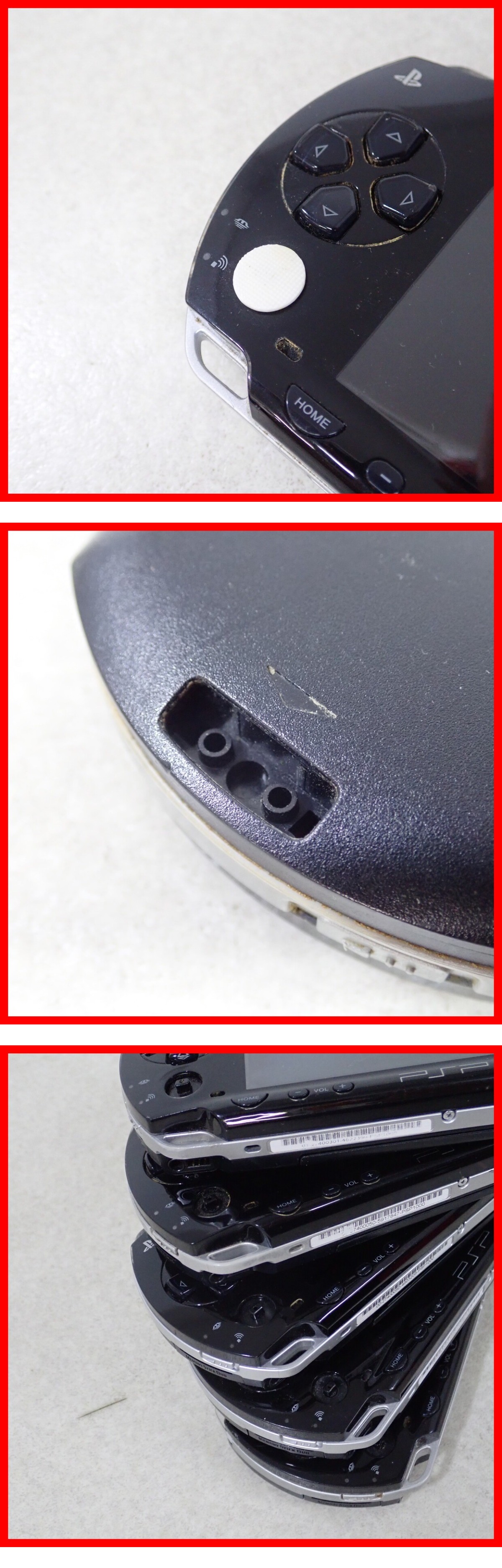 | PSP プレイステーション・ポータブル 本体 PSP-1000 まとめて10台セット ソニー SONY 初期化済 ジャンク ■ジャンク品として出品しておりますので、どの様な不具合が生じましても当店では交換・返金・返品等の対応はできません。 ■ご理解ご納得いただける方のみご入札をお願いいたします。 ■液晶不良、ボタン故障、本体破損、ソフト読み込み不可などのため、ジャンク品として出品致します。 ■本体にスレ、キズ、汚れ、ヤケ、黄ばみ、ハゲ、ヒビ、テープ/シールの貼付部品の欠損、封印シールの欠品があります。 ■メモリーカード、バッテリーは付属致しません。 ■本体は初期化済です。 ■〇ボタンが故障しているものは同時長押しにて初期化を行いました。 ■液晶不良により画面にて初期化済の確認が取れないものが含まれますが、初期化後の再起動音にて初期化済とさせていただいております。 ■商品の状態・セット内容につきましては写真をご確認ください。 ■一部を除いての発送は行っておりません。 ■写真のものが全てです。付属物の有無や状態については写真からご判断ください。 ■付属物については細かいチェックはしておりません。万が一、欠品があったり余計な物が入っていたとしてもご了承ください。 ■商品によりますが、発売されてから10年以上経過している中古品であることをご理解いただいた上でご入札をお願いいたします。なお、新品や美品、そのほか特記事項がある場合は別途明記します。 ■ご落札いただいた本体及び箱や取説、付属品、梱包材などは1つでも廃棄や破損をしないようにお願いいたします。 ■商品のご落札後、廃棄や破損をした場合、あるいは【修理や整備、カスタム、付属物の抜き取りやページの抜き取り/書込み等、ご落札者様の目的に応じて何らかの手が加えられた商品】に関しましては、問題があった場合でも対応や返金などの対処ができませんのでご注意ください。 |