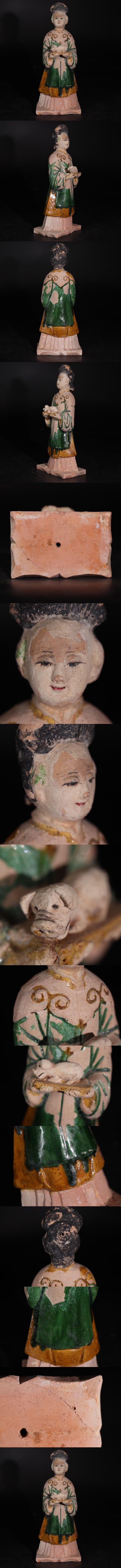 | 時代 三彩 婦人俑 / 中国美術 陶器人形 置物 煎茶飾 検索: 唐三彩 唐 .G3888 |