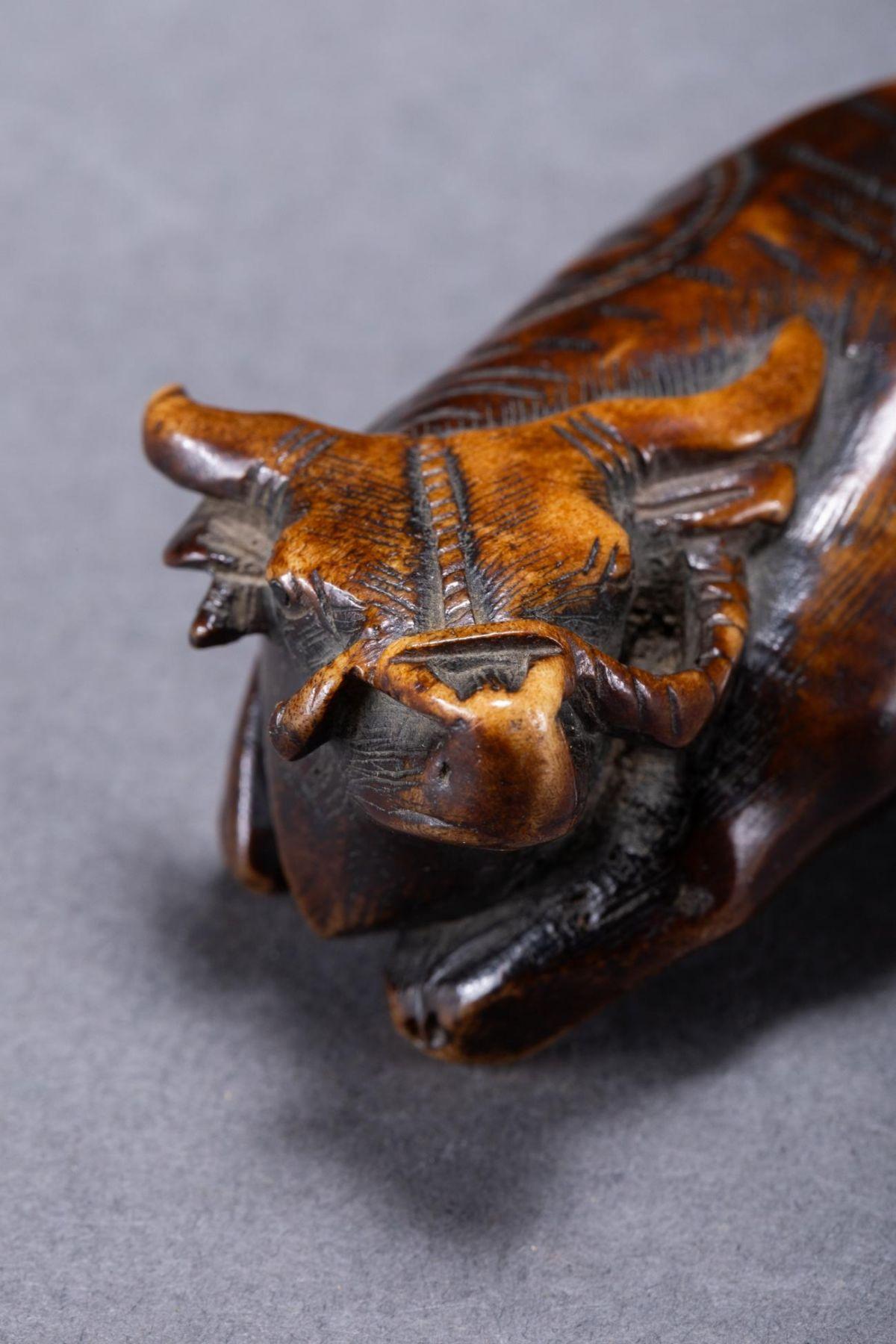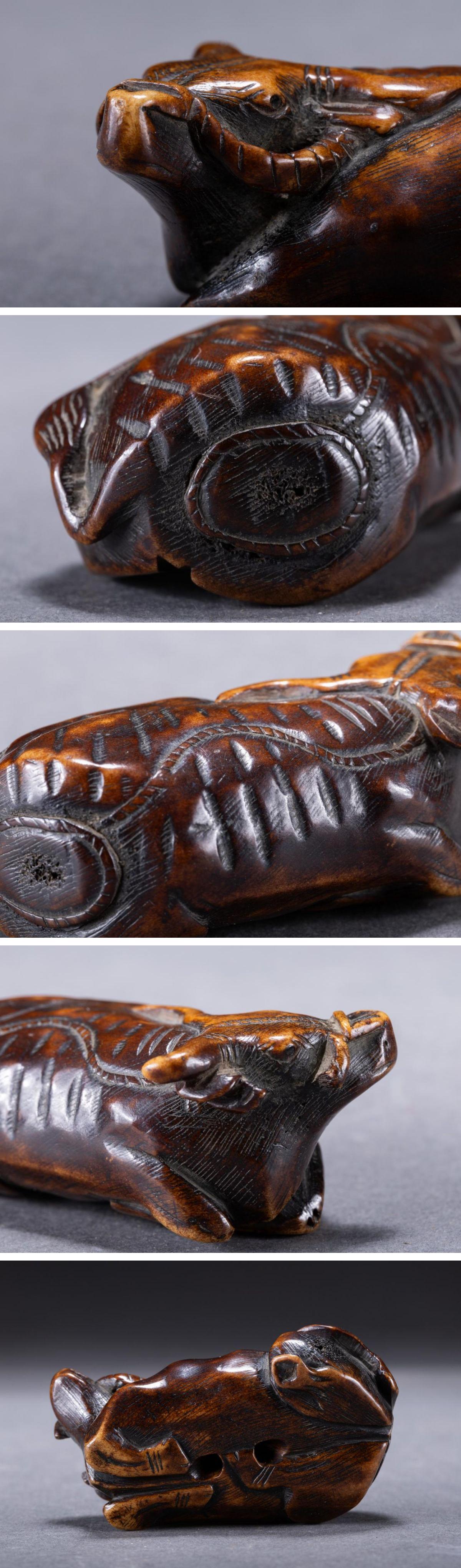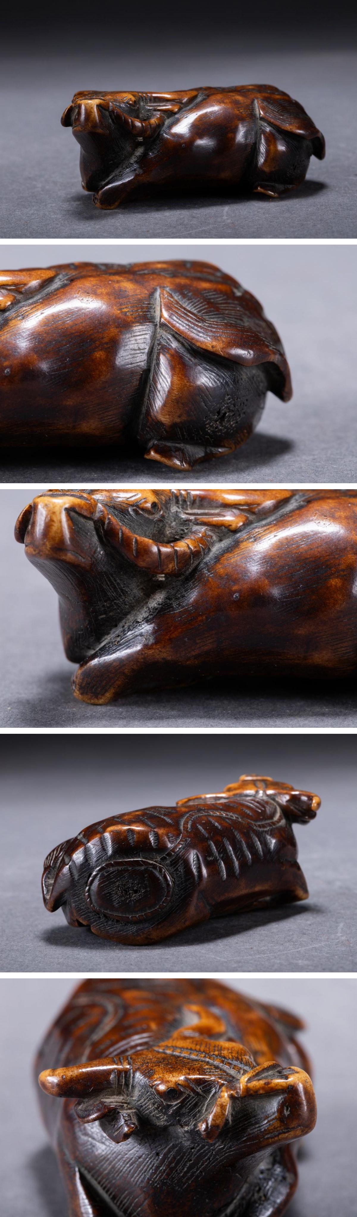 【華】某有名収集家買取品 時代物 天然白材 牛紋根付 古美術 骨董品A25090120-EV