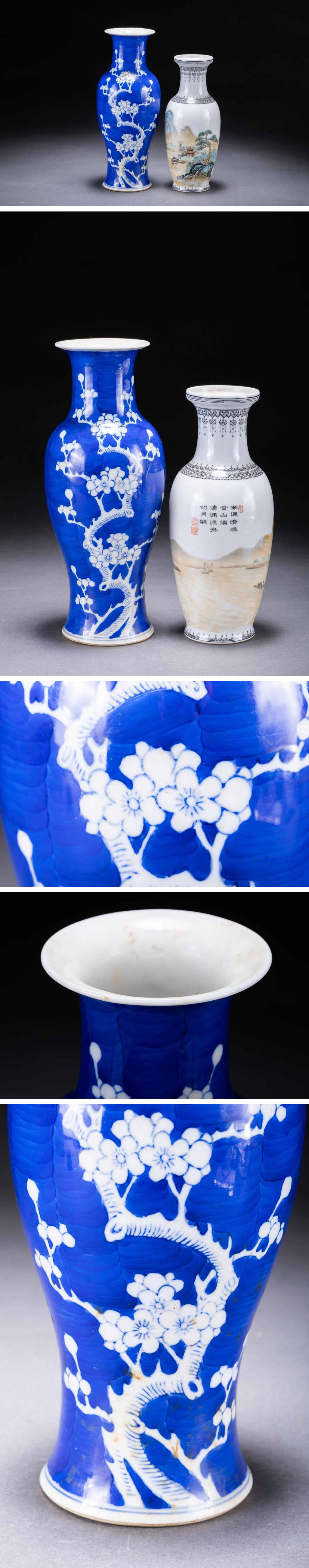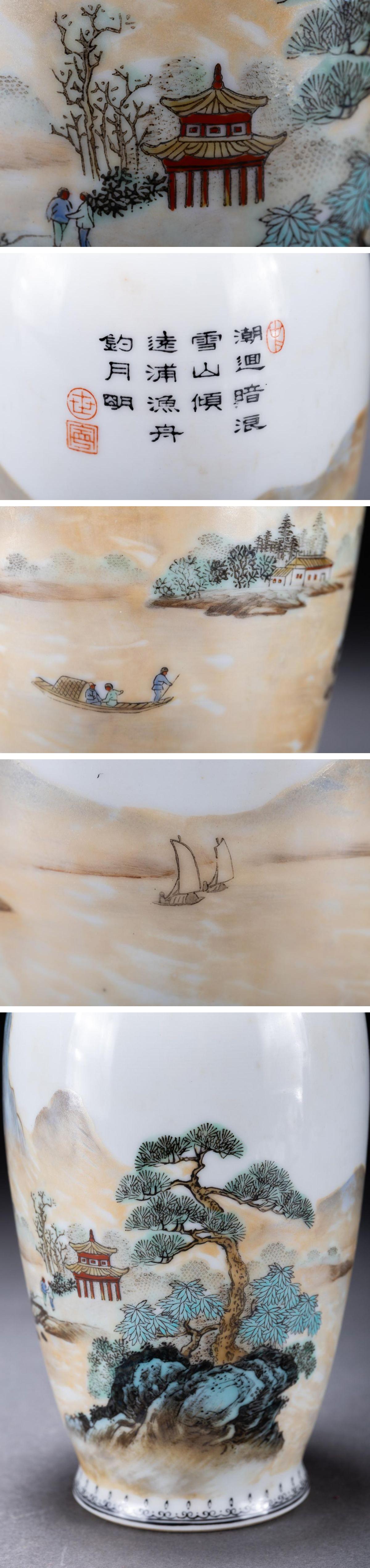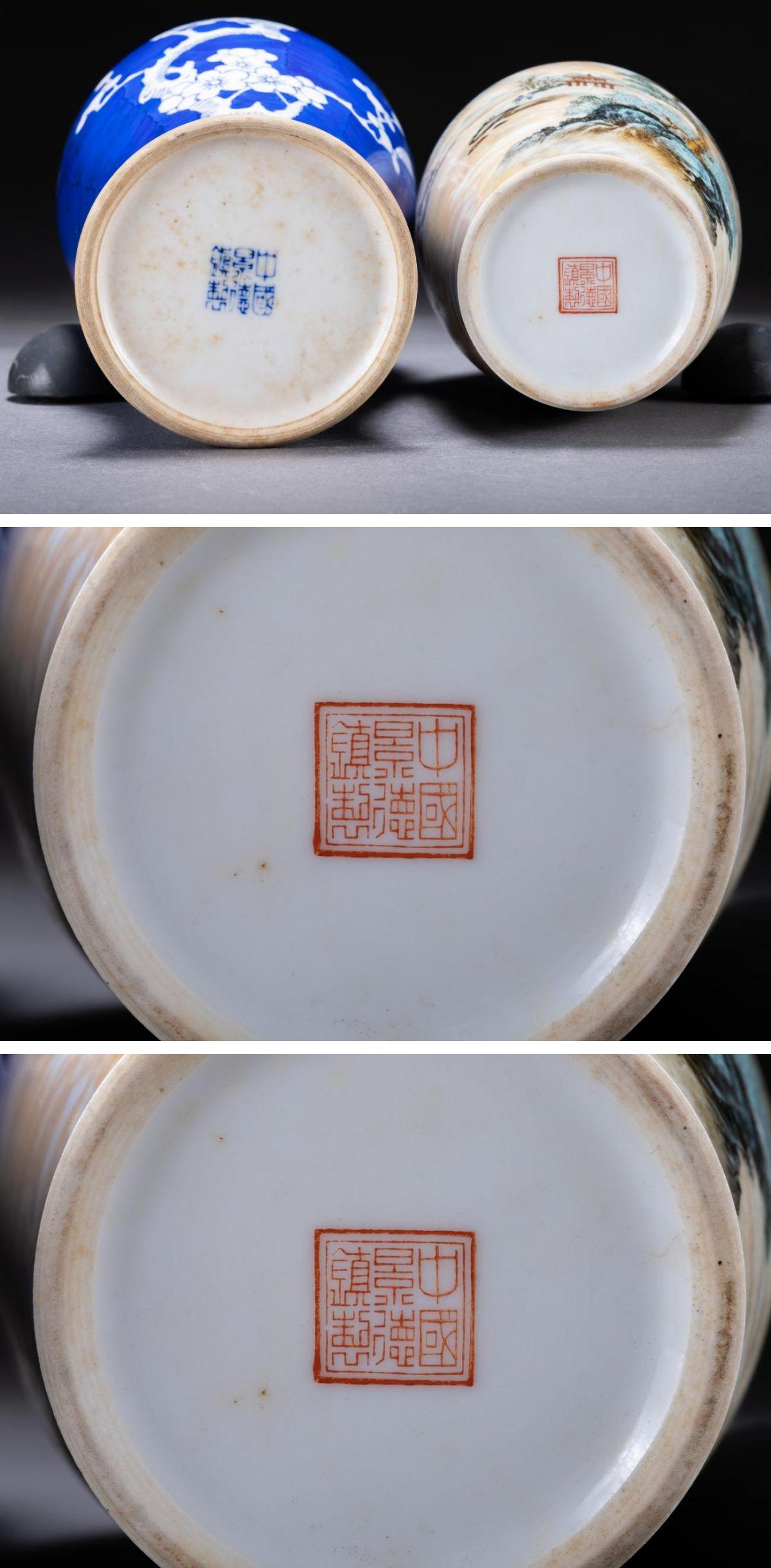 【華】某有名収集家買取品 時代物 中国伝来 景徳鎮在銘 染付き 色絵山水紋花瓶一双 古美術 骨董品A25090147-PR
