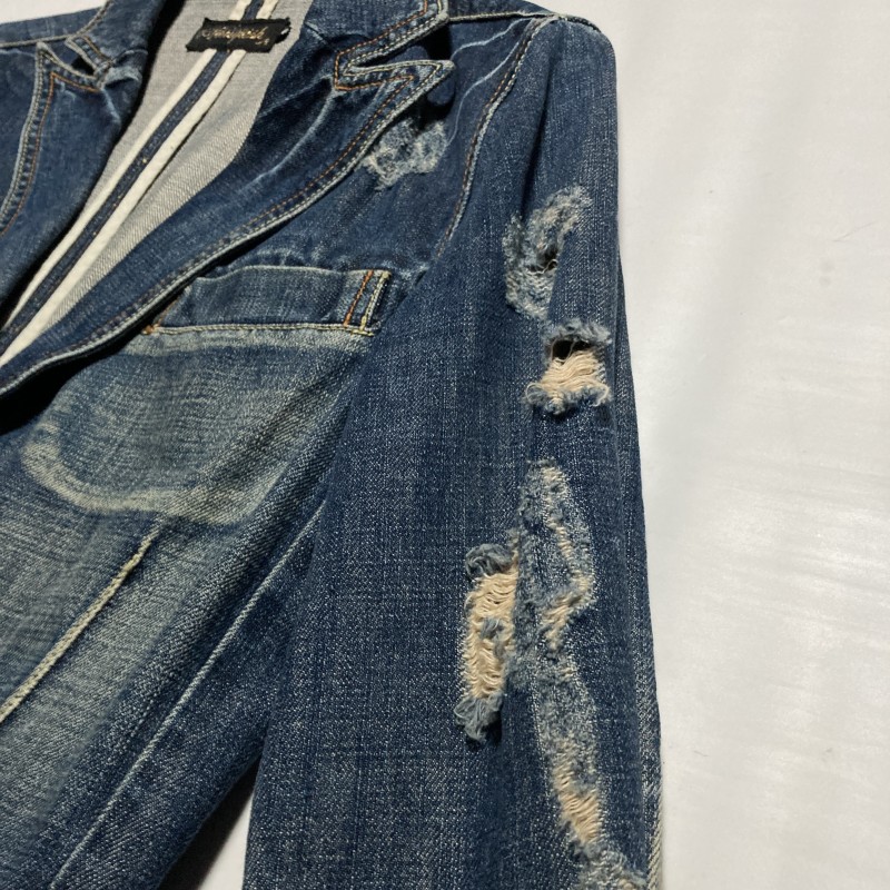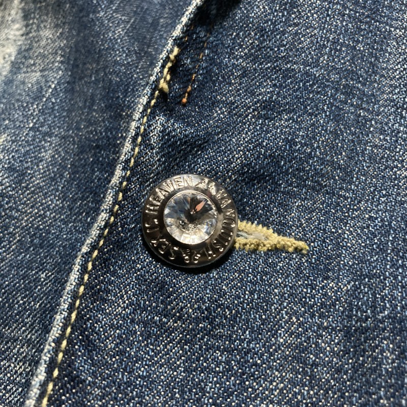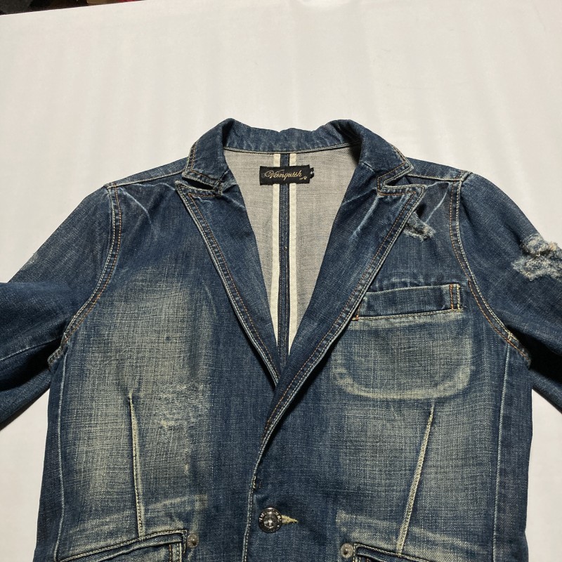 VANQUISH(ヴァンキッシュ)のダメージ加工、カラーストーン装飾、デニムテーラードジャケットです。