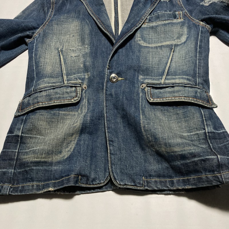 VANQUISH★00s archive★スワロ カラーストーン ダメージ&ヒゲ デニム テーラードジャケット 44 ヴァンキッシュ Y2Kヴィンテージ平成お兄系