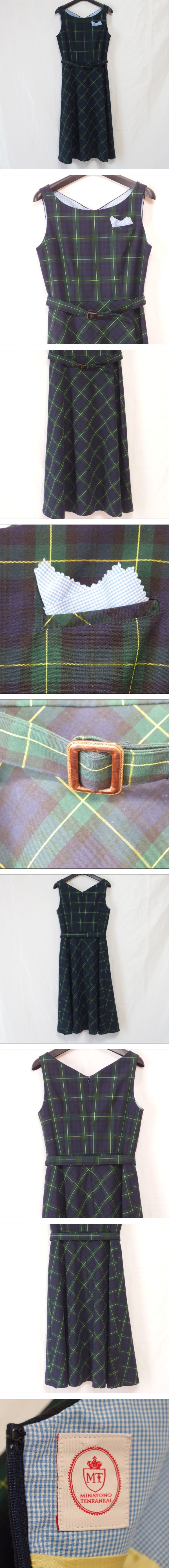 MINATONO TENRANKAI◆みなとのてんらんかい チェック柄 ベルト付 ジャンパースカート ワンピース(グリーン)サイズ2◆USED S | |||