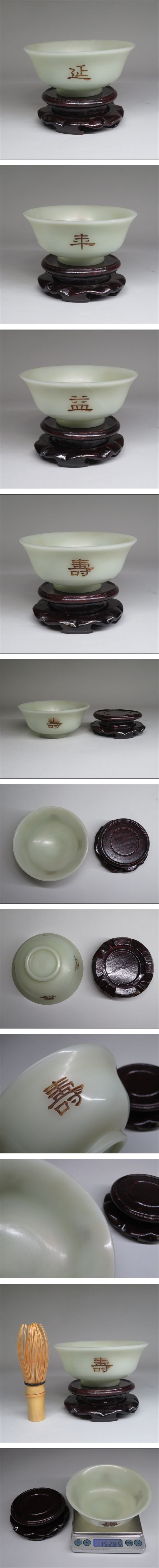 | 【東】清時代 古玉碗 刻「延年益寿」 唐木台付き 中国美術/古美術・骨董品 | ||