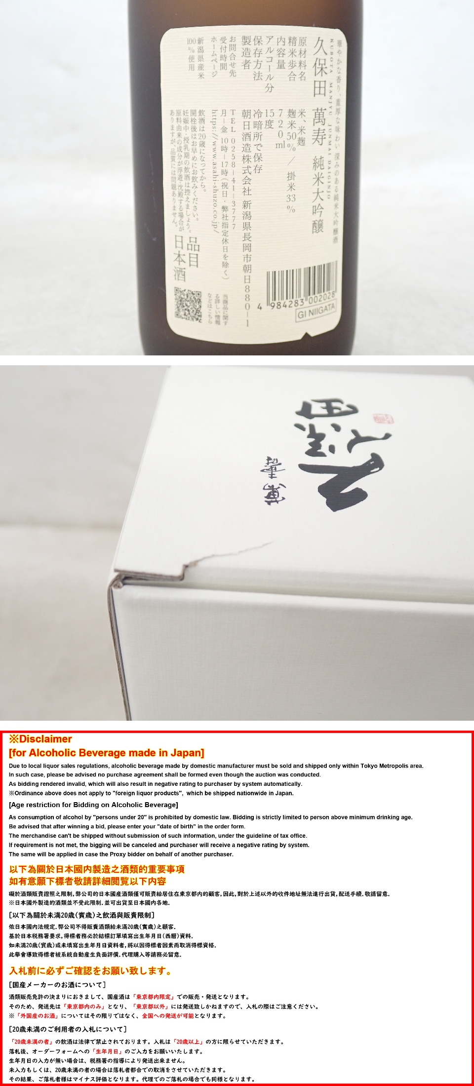 | 【東京都内限定発送・未開栓】 久保田 萬寿 純米大吟醸 720ml 15度 26年2月詰め ▽ 75A00-2 | ||||||||||||||||||||||||||||||||||||