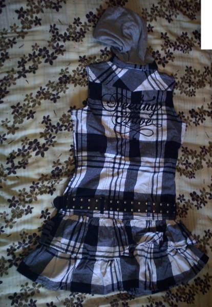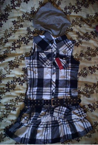 新品タグつきです。 定価 商品代金5,616円 カラー 黒・白のチェック フードはグレー、ベルトは黒です。 フードは取り外し可能です。重ね着しているように見えるワンピースです。 素材 本体・フードとも 綿100%(本体はシャツ素材 フードはカットソー素材です。) 裏地はありません。 サイズ L バスト86~94 身長154~162cm 実寸 着丈82(上56 下26) 身幅47 肩幅35 ベルトの長さ 105cm 巾4cm ウェスト82cmから、2cm間隔で6個穴があります。 (二つ目の穴だけ少し広がっています。) ローウェスト部分にベルト通しがついていますので、ベルトも大きめにできています。 |