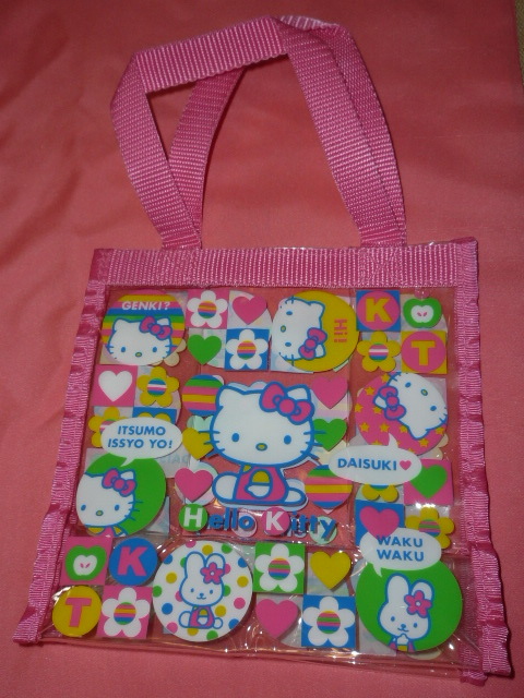 ☆商品説明☆ご覧いただきありがとうございます^^ サンリオ ハローキティキャラクターのビニールトートバッグです。2003年製。と~ってもかわいいですよ♪ 大きさは持ち手からタテ 約30.5cm、ヨコ 約18cm、底幅 約10cmです。たいへん古いものですがコレクション用として大切に保管していましたので、未使用でたいへんきれいな状態ですが家庭で保管していた物になりますのでご理解いただける方のみご入札をお願い致します。☆発送方法☆ 定形外郵便、ゆうぱっく ☆コメント☆ ノークレーム、ノーリターンでお願いします。ご不明な点がございましたらお気軽にお問合わせ下さい。他にもハローキティキャラクターグッズたくさん出品しております☆ 良かったらご覧下さいね*^^*