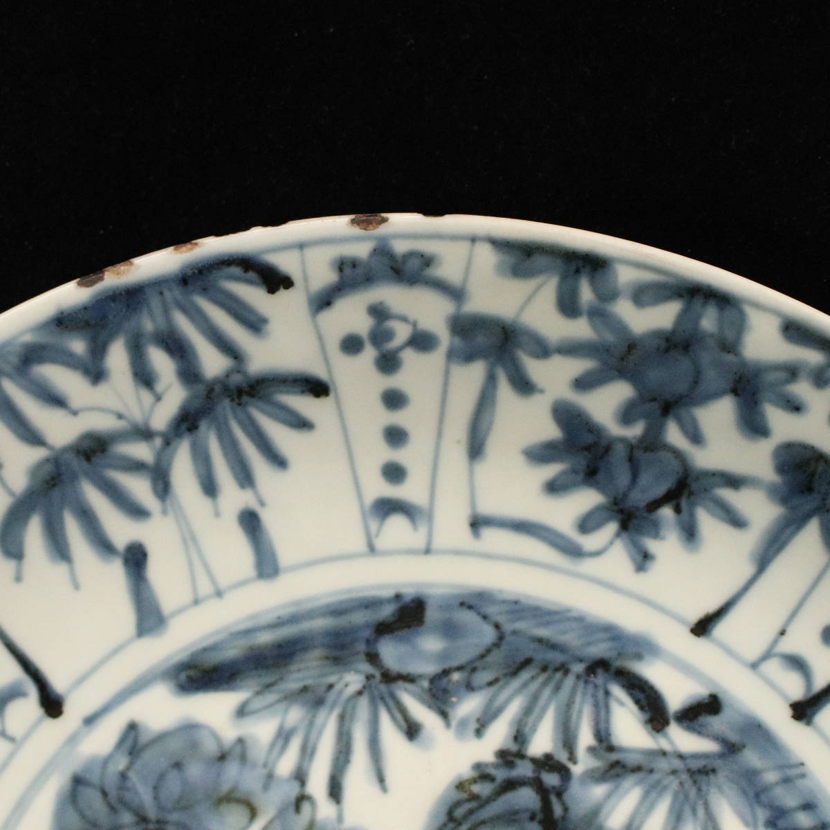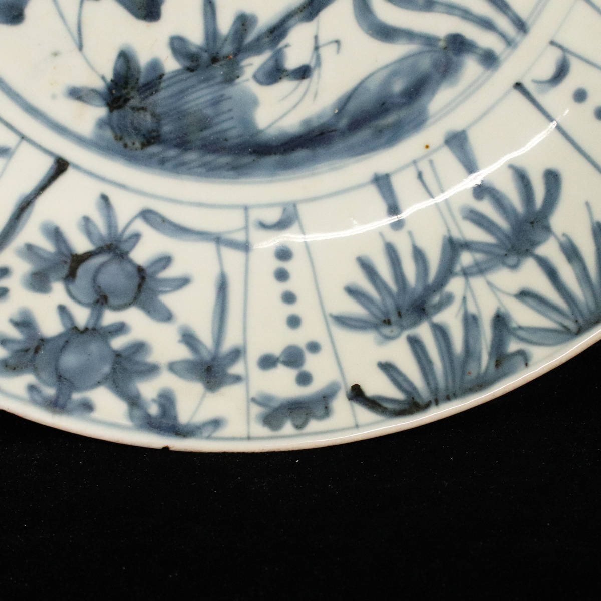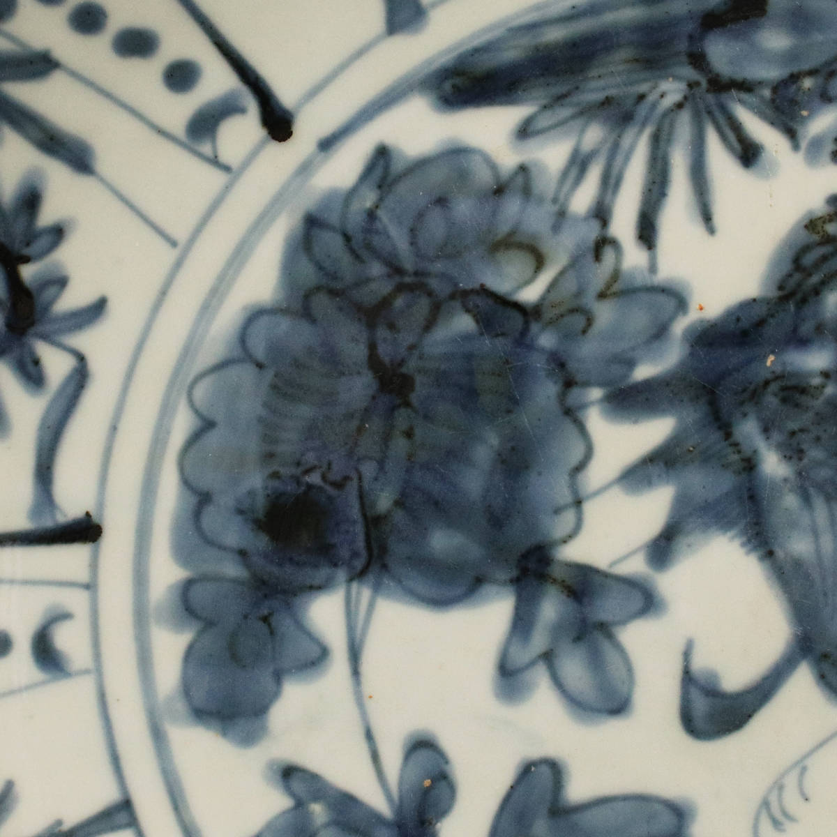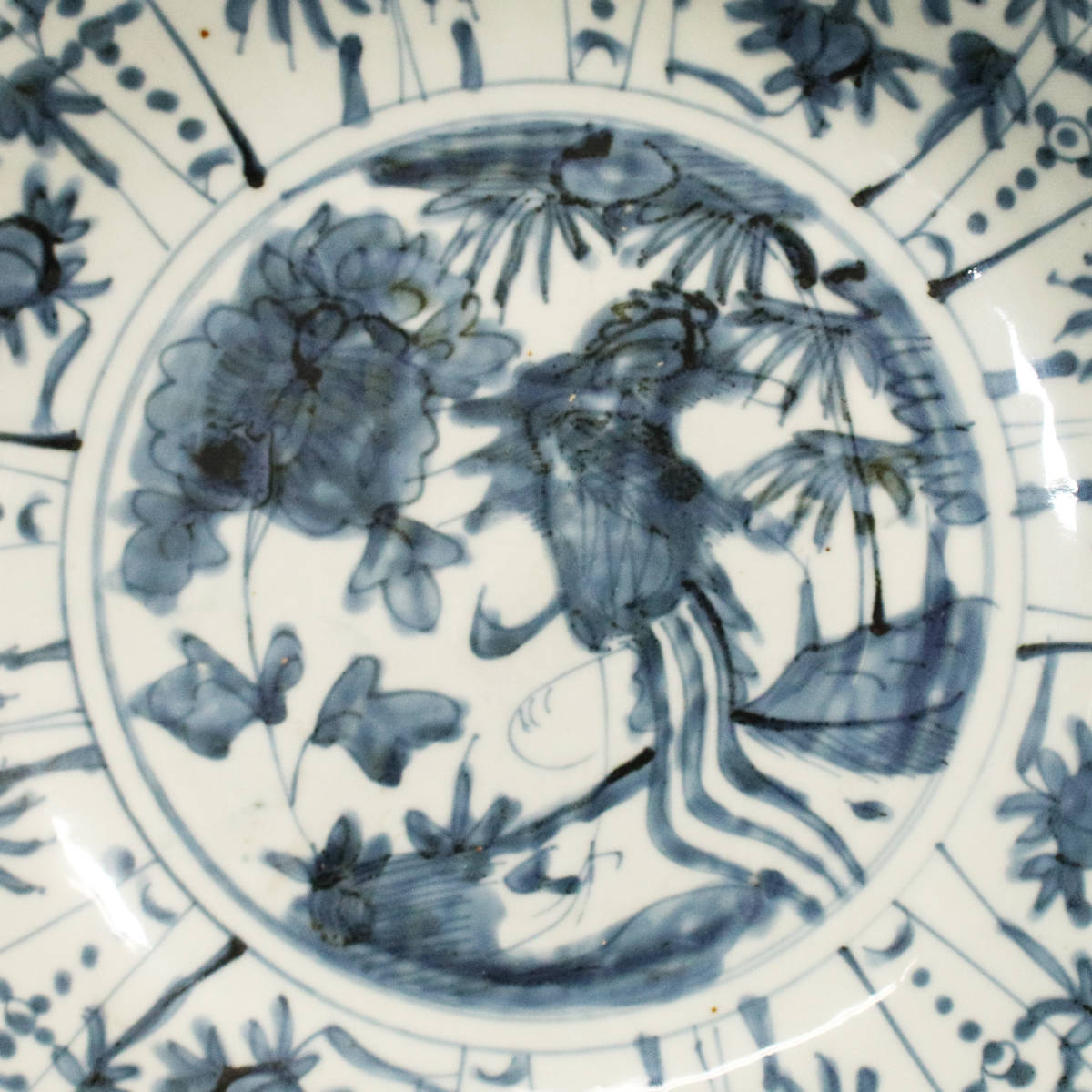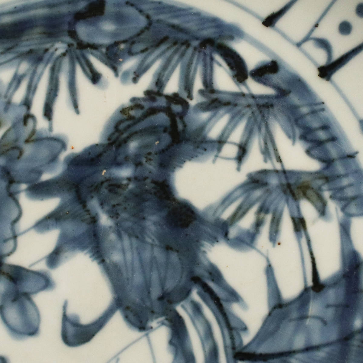 *■ 中国古陶磁 ■ 明代作 古染付 芙蓉手 花鳥文 大皿(直径34cm) <230412007>*