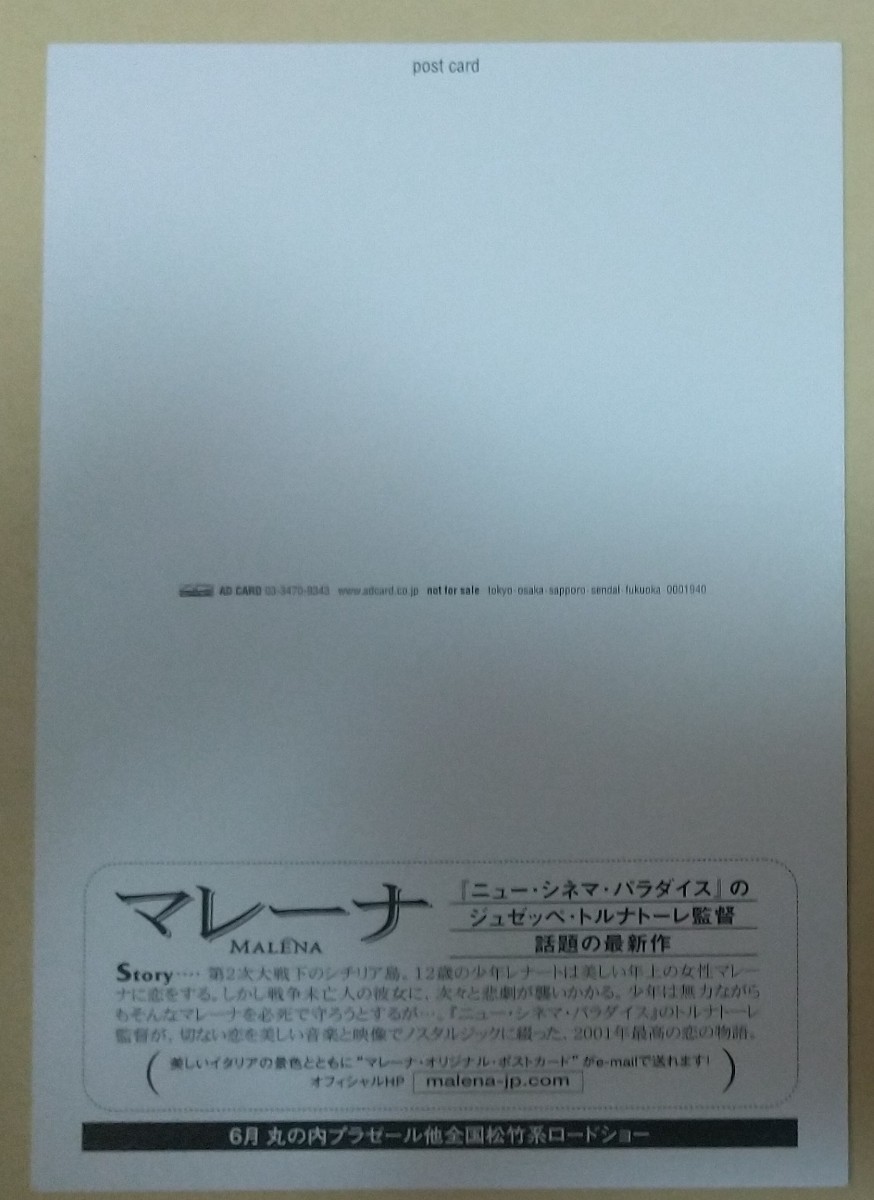 モニカ・ベルッチ主演映画『トゥルー・クライム』の非売品ポストカードです。| 出价者 | 信用 | 价格 | 时间 |