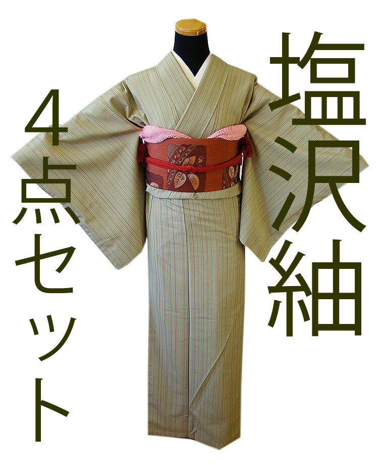 | ちょっと一言 | 他の着物には類を見ないシャリ感溢れる独特の肌触りと適度な張りが着物旅にも相応しい 粋な着物姿を演出する伝統的工芸品、塩沢紬&なごや帯&帯揚げ・帯〆の豪華な4点セットです。 帯や小物次第で自分らしい様々な表情をお愉しみ頂けることでしょう。 |
