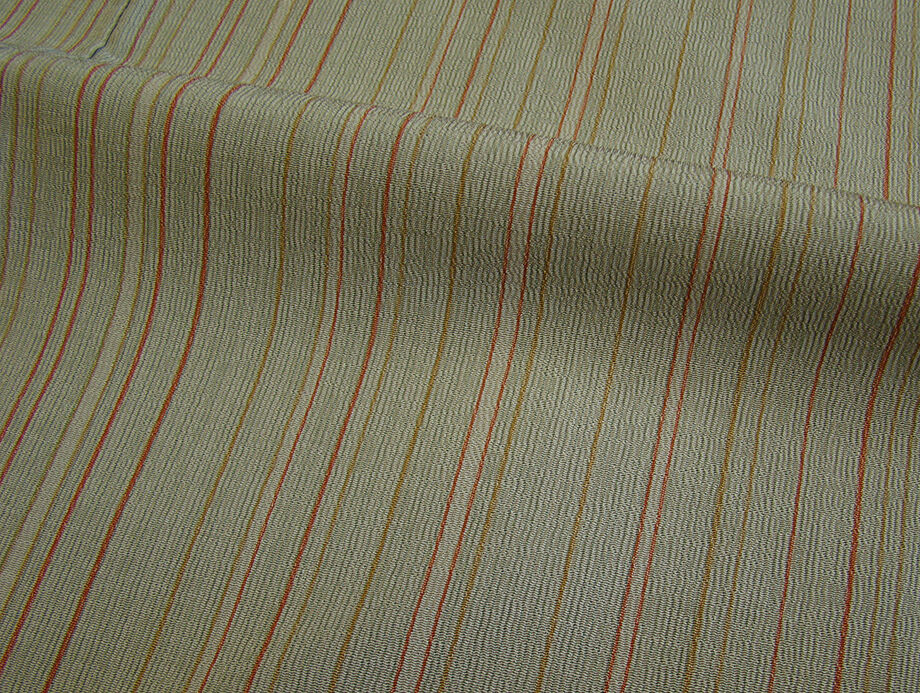 | 商品説明 | こちらのお品は袷でございますので、10月~5月までお召頂ければと思います。 とてもしなやかな紬は、ふっくらとしており着易く動きも軽く、着くずれしない腰の強さを 併せ持ったお洒落着としていつでもどこへでもお気軽にお愉しみ頂けご愛用頂けるお品です。 他の着物には類を見ない「しゃり感」たっぷりの独特の肌触りと 適度なハリは伝統的工芸品指定、塩沢紬ならではのものでございます。 絶妙の地風が着物通の方々を虜にする極上の着心地を誘うシャリ感あるさらりとした紬地は、 薄い鶸茶色地に赤茶、黄土色の縞柄が粋な着物姿を演出し素材感が愉しい逸品です。 八掛は海松色(正絹)、幅広い年代の方にお召し頂けます。 残念ながら証紙残布は付いておりませんが手触りや織等から塩沢紬と思われます。 しなやかな扱い易く〆易い紬地のなごや帯(六通柄)は、 エンジ色地に花草柄の織柄が温もり溢れる帯姿を奏でております。 また、帯揚げは絞り、桃色地に絞り柄、 帯〆は平組、栗梅色の組紐となっております。 |