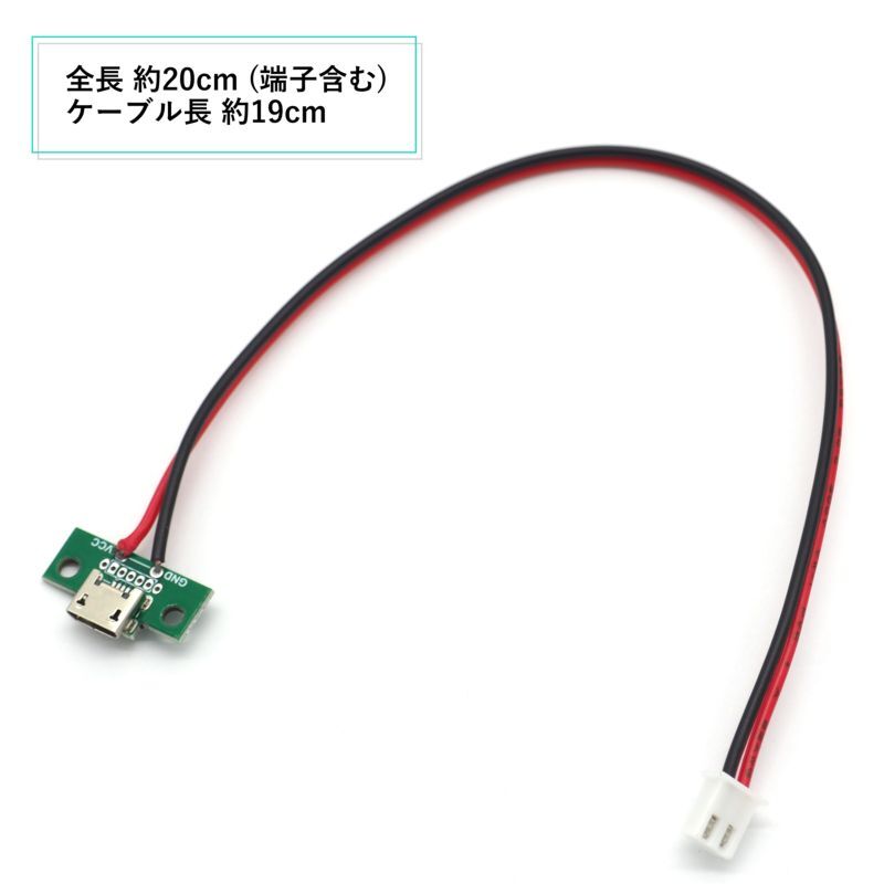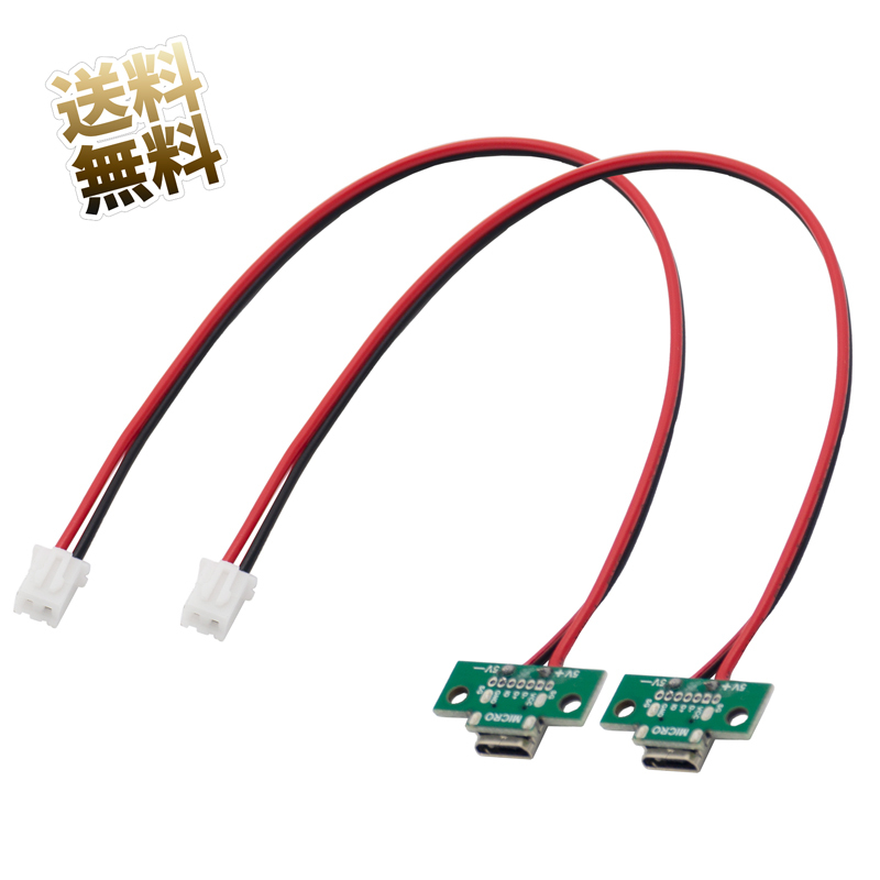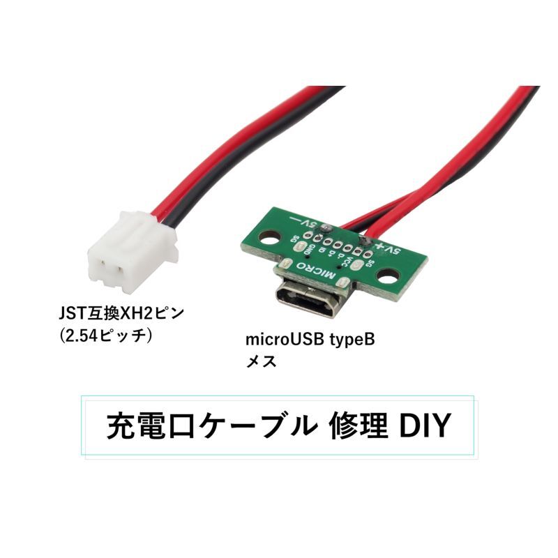 microUSB typeB メス-JST互換XH2ピン(2.54ピッチ)使用充電口ケーブル 修理 DIY