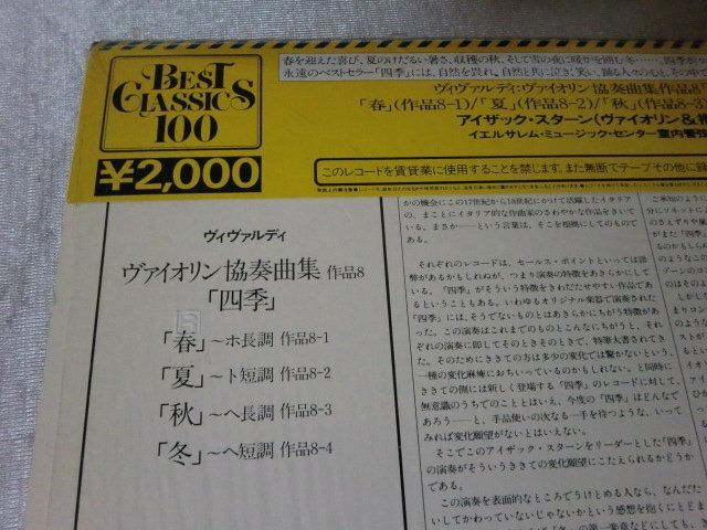 | (RB)何点でも同送料 LP/レコード/帯/シュニリンク袋付/アイザック・スターン/ヴィヴァルディ / 四季/20AC-1548 |