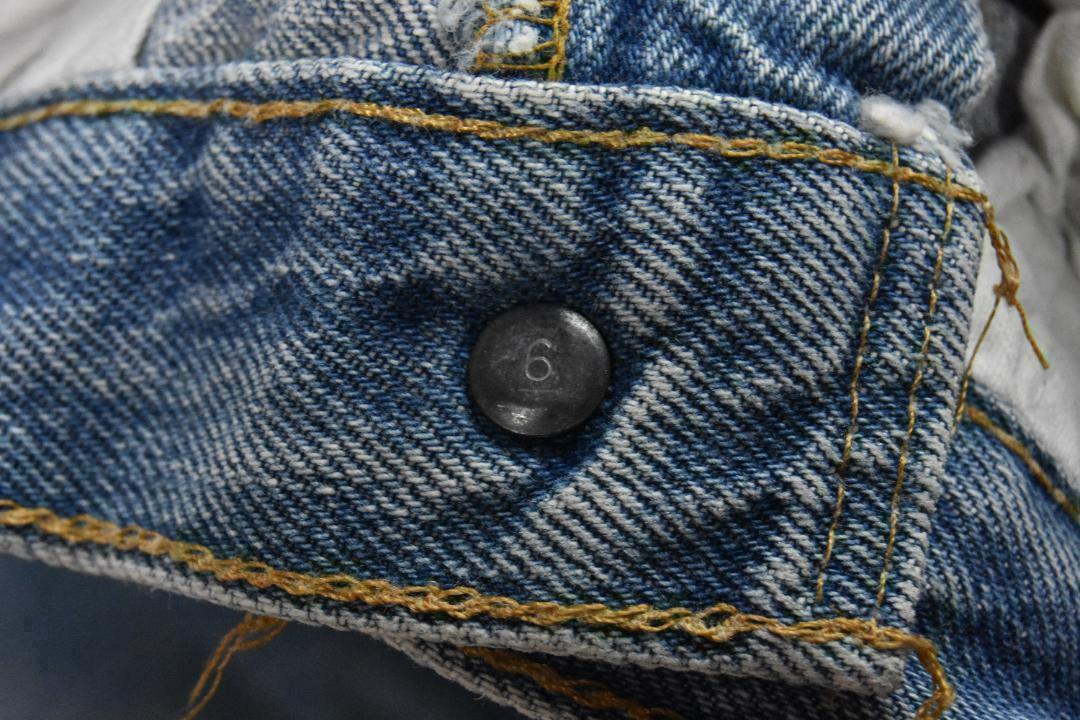 【MADE IN USA 表記サイズ W30 L34 実寸 ウエスト約74cm レングス約30cm 総丈約52cm 赤耳 トップボタン裏№6 ■1970年代のオリジナルで、現在は生産されていないアメリカ製のモデルです。多少の使用感はありますが大きなダメージはありません。| 出价者 | 信用 | 价格 | 时间 |