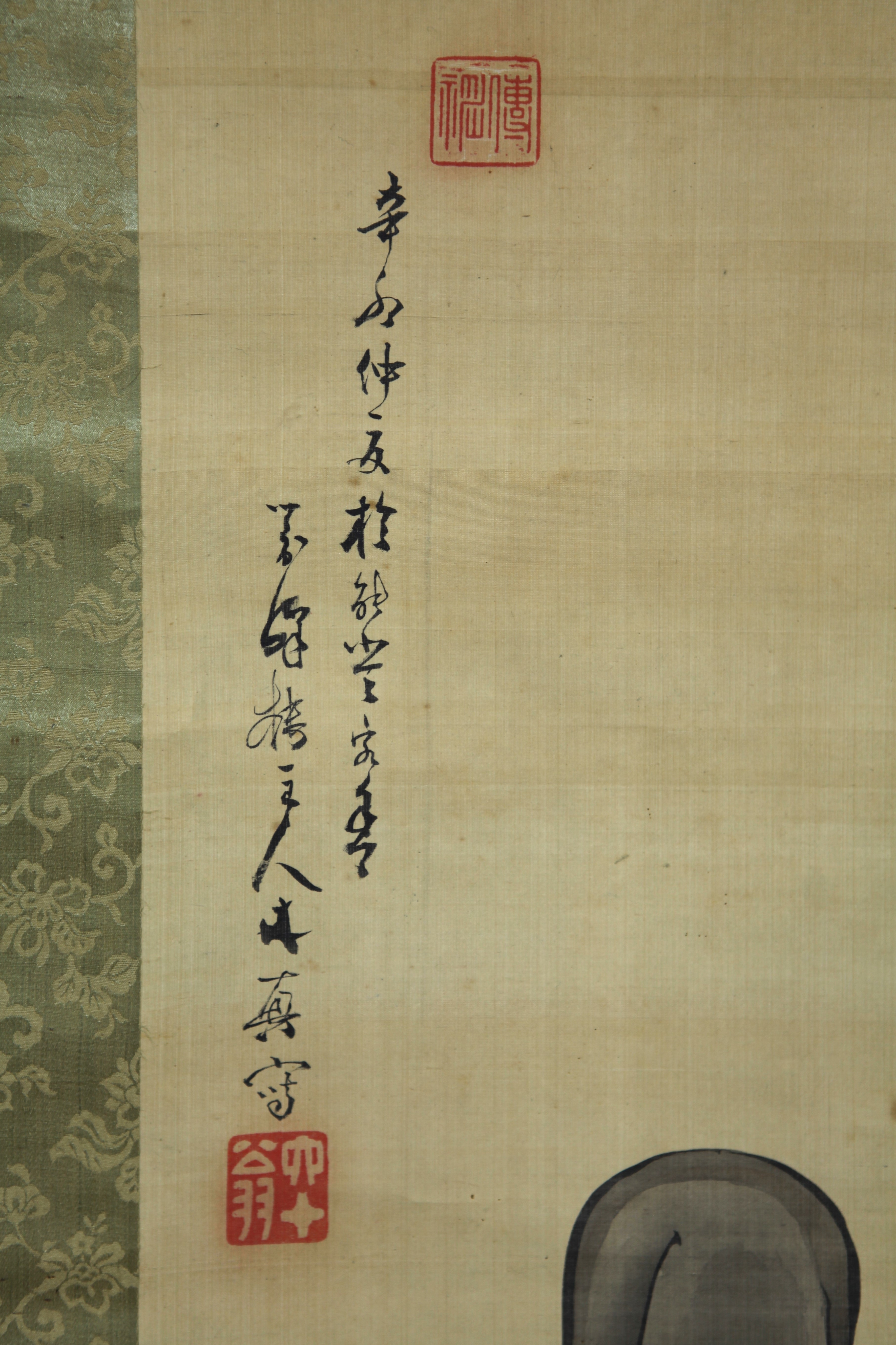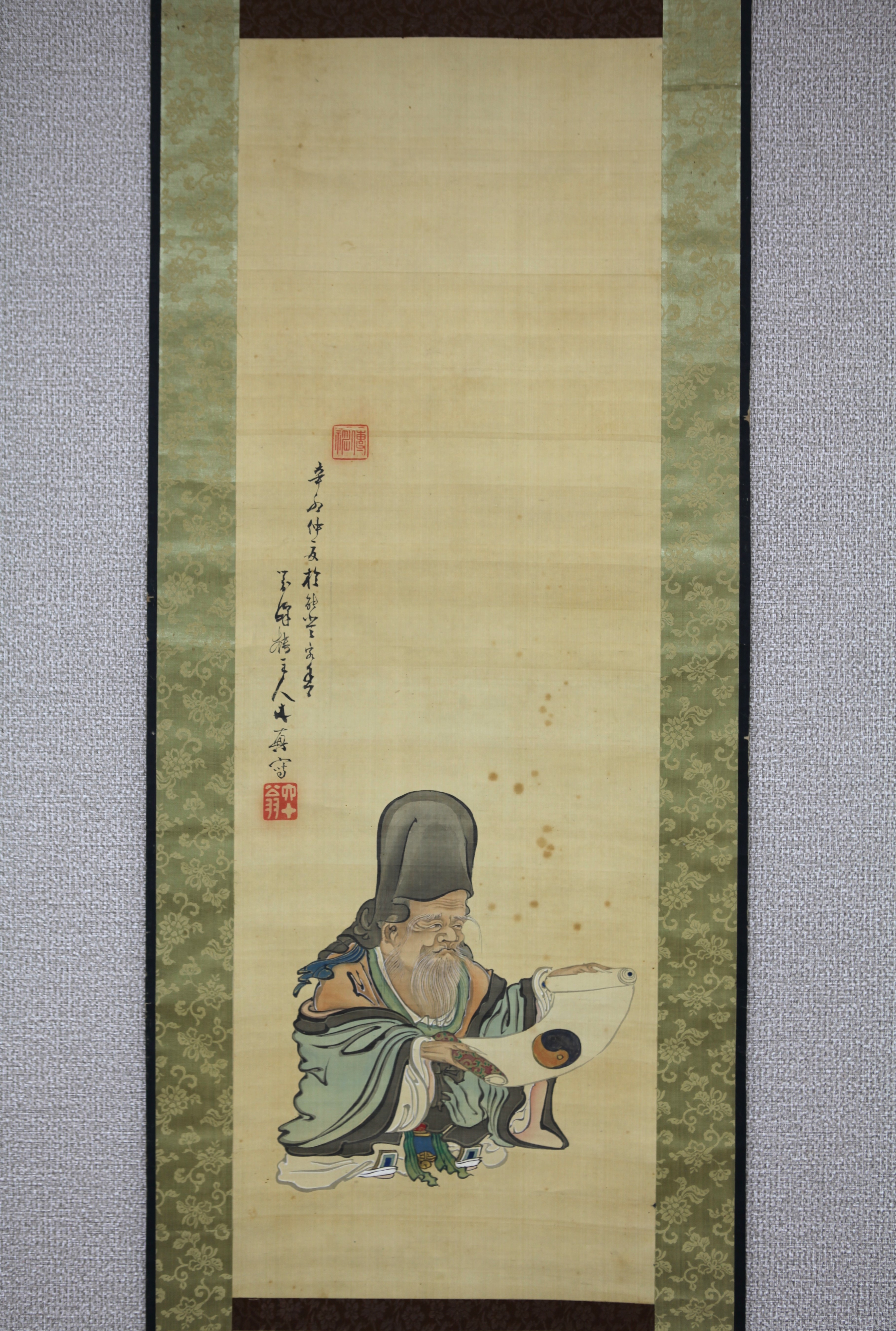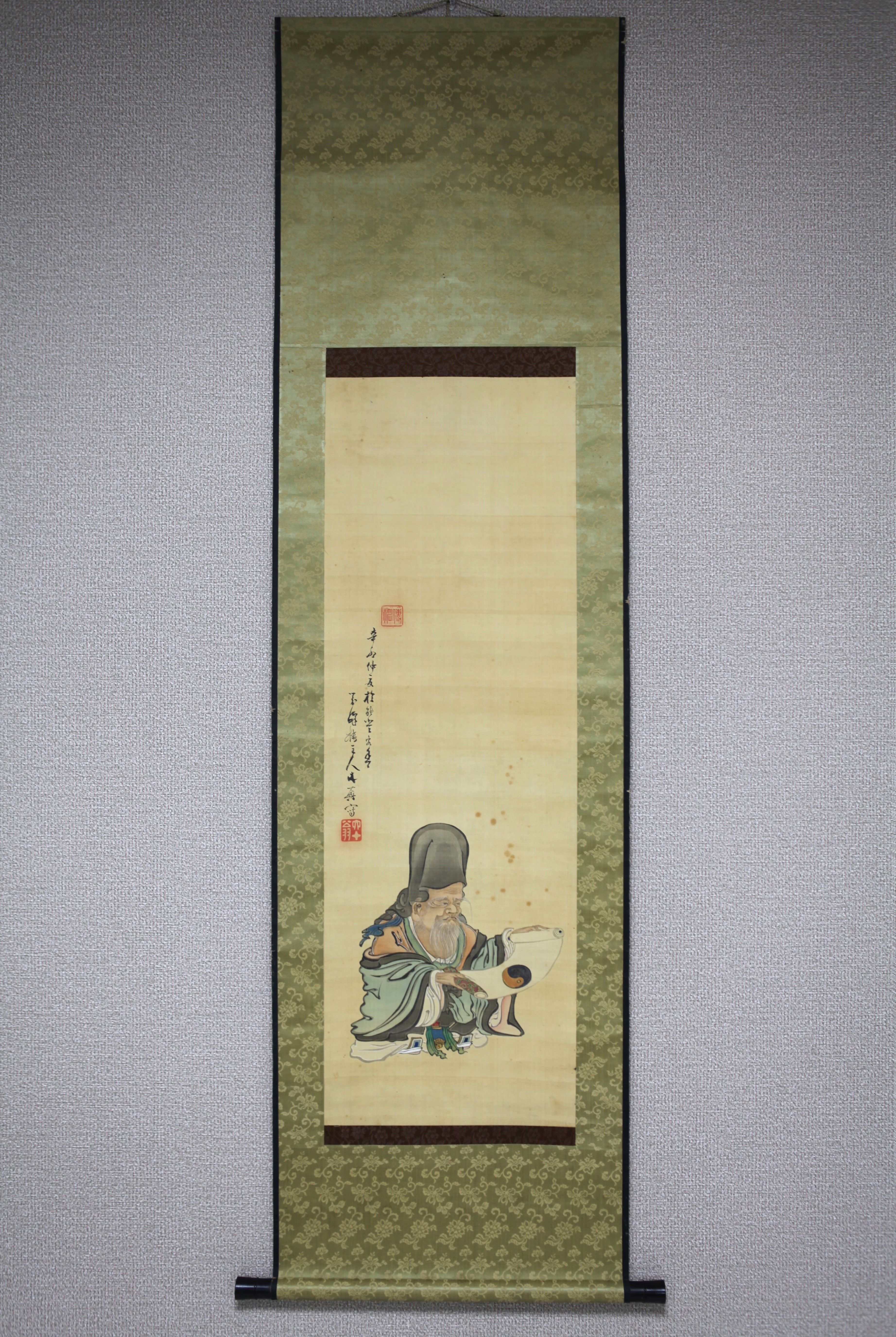 | 【真作】【風車】 柳沢文真 「寿老人図」◎肉筆絹本◎長野の人 谷文晁師事 南画家 横浜東洋絵画展受賞 | ||||||||||||||||||||