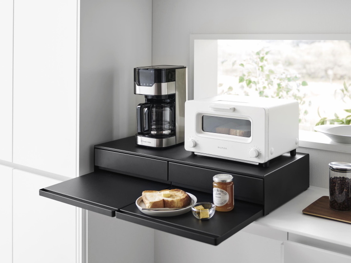 【幅80cm】ツーウェイ キッチン家電下スライドテーブル(ブラック) トースターや炊飯器などのキッチン家電の下に収納できる引き出し収納付きのスライドキッチンテーブル。 スライド式でさっと引き出せる便利アイテムです。 引き出しとテーブル部分は上下入れ替えて使う事が出来ますので、上に乗せる家電に合わせてお好みで設置ができます。 *お届けは「本体」のみです。炊飯器やトースターなど家電類や雑貨は付属しません。 *スライドテーブルと引き出し両方を全開にしたまま手を離さないでください。 それぞれに3kgの物を置いた状態で全開にした場合、天板に7kg以上の物を置いていなければ転倒・落下します。 【サイズ・素材など】 ■幅800×奥行き393~643mm×高さ135mm ■天板:幅 800×奥行き370mm ■スライドテーブル1つあたり:幅395×奥行き250mm ■引き出し1つあたり:幅365×奥行き340×高さ 90mm ■引き出し最大開口時:奥行き205mm 【送料・その他】 ■送料無料(沖縄、離島は別途見積り) ■発送まで2.3営業日を頂いております。(土日祝は休業日です) 【その他・必ずご確認下さい。】 *お支払いいただく金額は落札金額+配送料金となります。 *商品の直接取引・送料着払いには対応しておりませんのでご了承ください。 *初期不良や運搬中の破損などは交換対応となります。 *商品が到着しましたら、不良、破損がないかご確認ください。 万一破損等ございましたら、3日以内にご連絡ください。お時間がたちますと、交換等できない場合がございます。 *当店の商品はすべて新品商品です。 *土日祝は休業の為、発送やご連絡ができません。 よろしくお願いします。 |