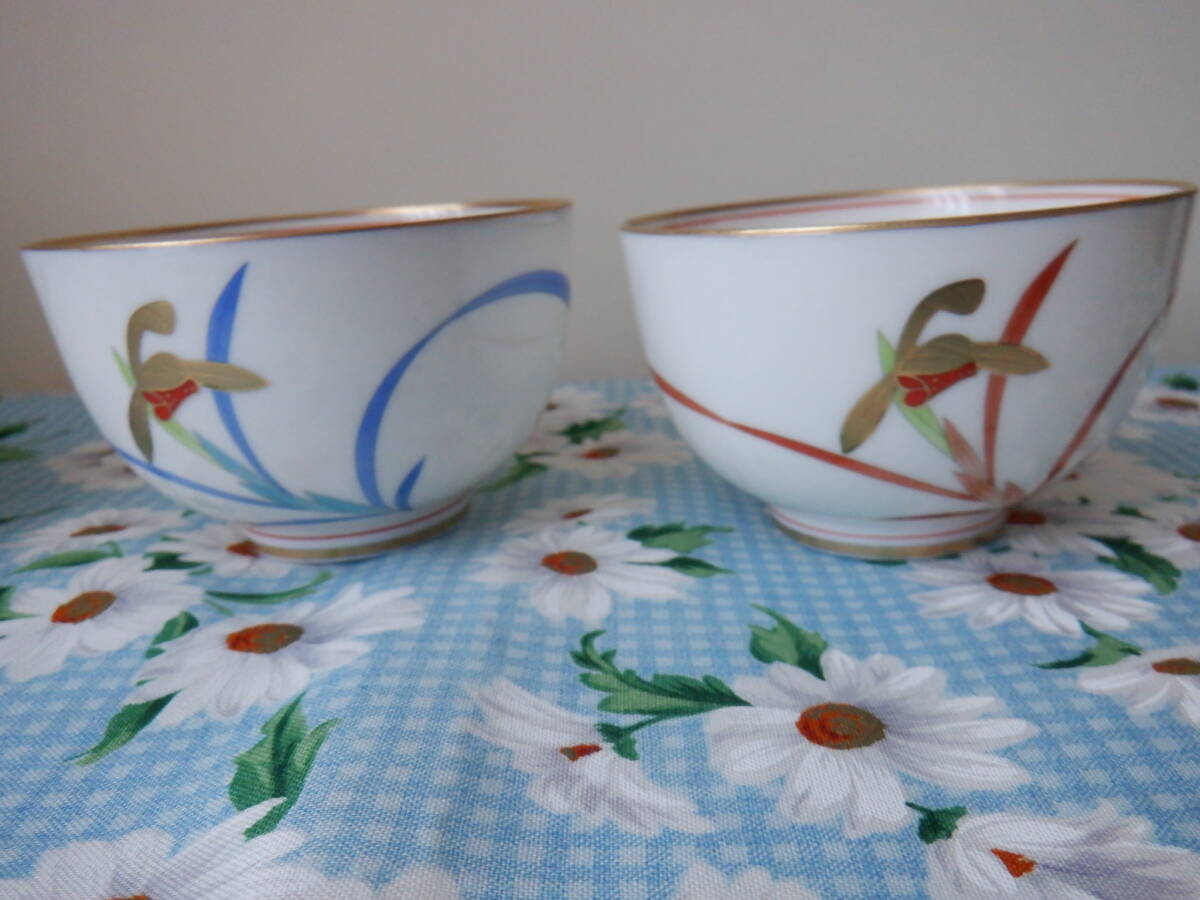 『香蘭社 御湯飲み揃★金彩 色違いのランの花柄模様の湯のみ~5個セット』~木箱入り 長期保管品です。湯のみのサイズですが、口径9cm、高さ5.2cmになります。採寸の方ですが、多少の誤差はお許し下さい。自宅にて長期保管品につき現状渡しとなりますので、ノークレームノーリターンでお願いいたします。 神経質な方は、入札をご遠慮ください。新規の方・評価の悪い方は入札は、こちらの判断で取り消す場合がありますのでご了承ください。