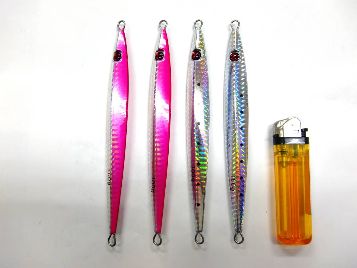 | 商品説明 | 新品のメタルジグ100g 4個セットになります。 カラーは画像を参考にして下さい。 ライターは大きさを比較する為に使用した物で付属はしません。 デッドスローから高速リトリーブまでバツグンの操作性を実現します! |