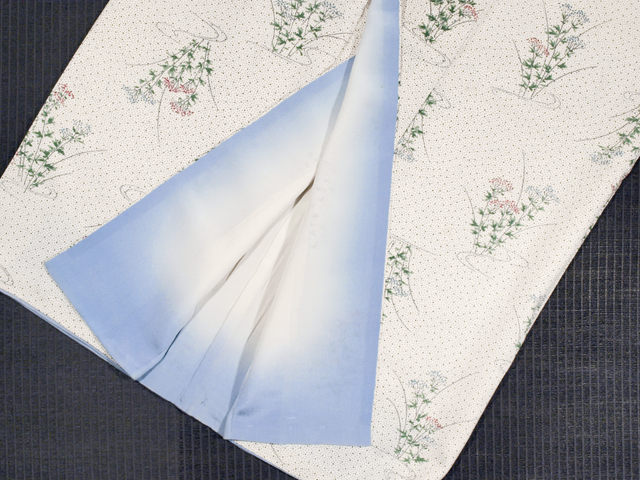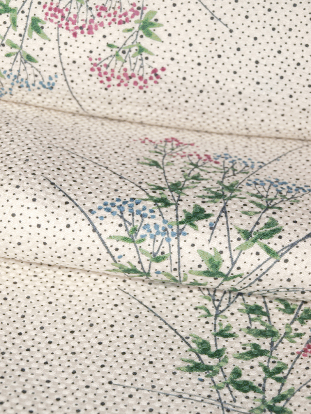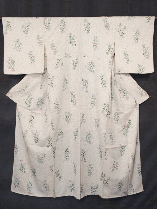 大小あられに流水と草花文 駒綸子 小紋 丈148 TAOB01004風楽 |