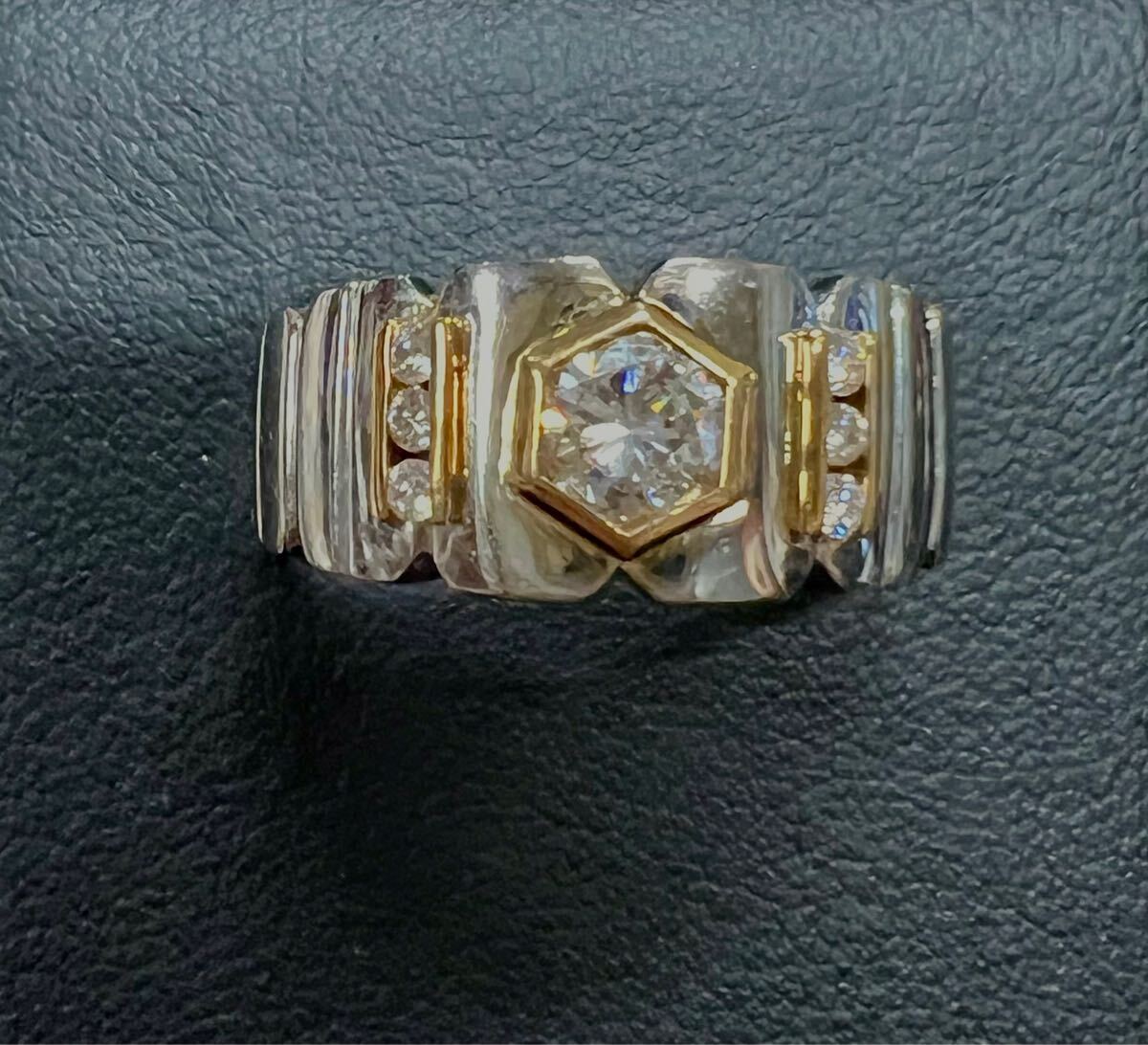 Pt900&K18プラチナ.金コンビダイヤデザインメンズリングダイヤ0.8ct| 出价者 | 信用 | 价格 | 时间 |