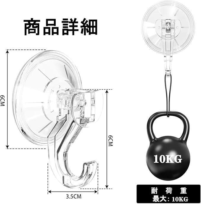 Giitoo 強力 吸盤 フック 耐荷重10kg PET 透明 真空 吸盤 2個入り フックネジ不要 壁掛けフック 繰り返し使用可能 お風呂 キッチン 壁を傷つけず 吸盤フック 透明, 2個( 直径60mm)| 出价者 | 信用 | 价格 | 时间 |