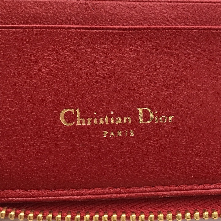 美品 Christian Dior レディディオール カージュ レザー 二つ折り ラウンド コンパクト 財布 ウォレット レディース レッド m14364 | |||