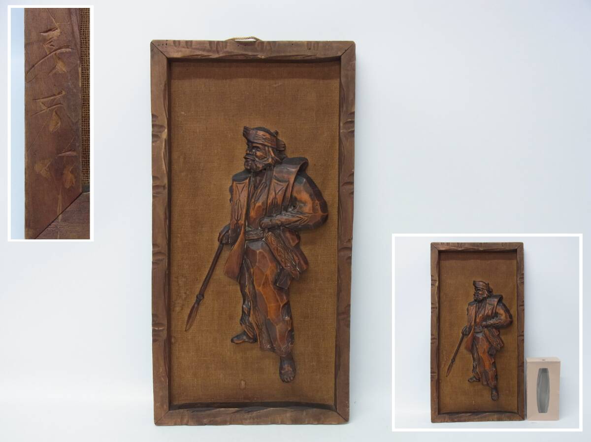 在銘☆60's/昭和40年 アイヌ 木彫り 壁掛 レリーフ 縦約62.3cm 木彫 壁掛け 北海道 矢 漁 狩猟 飾り 記名 インテリア レトロ ビンテージ 10 | |||