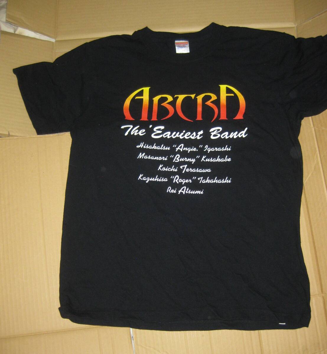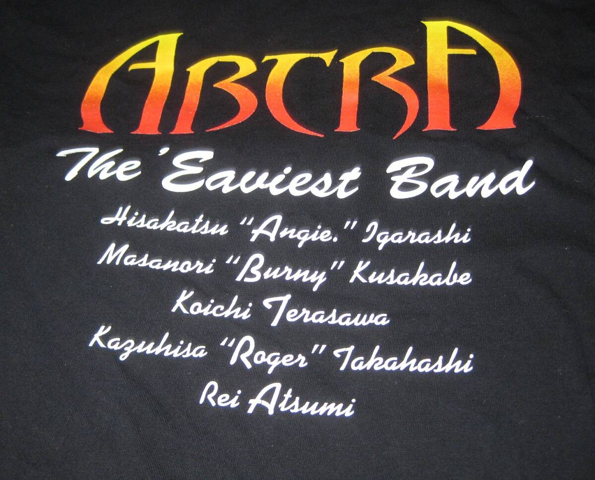 ※メルカリで一般的な形式的な挨拶・メッセージ等は送信していただかなくてもよろしいです。 ※新規IDのかたは 「報復評価をしない」・「速やかな決済」 を確約の上で入札してください。 ABTRA オフィシャルTシャツ サイズ:L ユーライア・ヒープのトリビュートバンドABTRA 日本のプログレ・ハード界のオールスターといえる豪華メンバーのバンドです。 :五十嵐"Angie"久勝Vo 日下部"Burny"正 G 寺沢功一 B :厚見玲衣 Key : 高橋"Roger"和久 Ds 身幅:約55cm 袖丈:約21cm 着丈:約72cm ※素人採寸ですので、若干の誤差はご容赦下さいませ。 中古ですが大きなダメージはないです お探しだった方、ファンの方、この機会にいかがでしょうか! 複数の商品を落札し、まとめて取引をご選択の場合、まず当方から発送方法をいくつか取引ナビにて連絡します。 その中からご希望の発送方法を返信しいただいてから、まとめて取引の発送方法として確定いたします。 | ||||