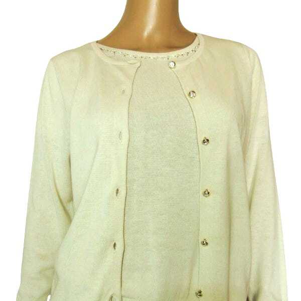 | 商品詳細 | NO-M7934 ★【ブランド】 * anysis (株)オンワード樫山 ★【特徴】 * 長袖カーディガンと半袖カットソーのシンプルなセットアップ、華やかさをプラスする装飾品付きの薄手アンサンブルニットです。 素材は伸縮性に優れた柔らかなアクリル&コットン素材。 カーディガンは丸首、フロント7ヶボタン留め仕様。 カッソトーも丸首デザイン。 きちんと感もありオフィスやお出かけにおすすめ◎ それぞれ単品でもお召し頂けるシンプルなアンンサンブルニット、この機会に是非いかがでしょうか♪ ・肩パット× ・裏地× ・伸縮性○ ・ポケット× ・季節性 春夏向け ※状態につきましては当社基準のランク表も合わせてご参考下さい。 | ||||||||||