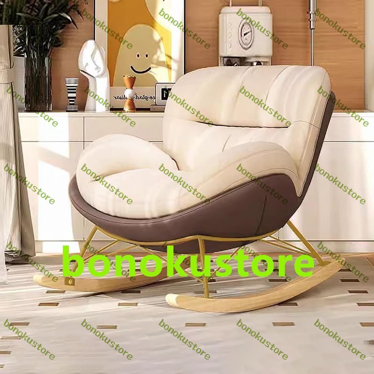 ロッキングチェア レジャーチェア ゆりかごチェア フロアソファ シングルソファ のんびりソファ リビングルーム ロッキングチェア バルコニー ロッキングチェア ロッキングラウンジャー ソフトで快適なホーム リビングルーム ベッドルーム バルコニー ワイドコンフォートチェア (ブラウン+ホワイトベルベットクッション)