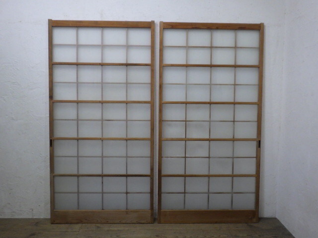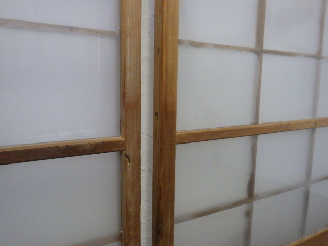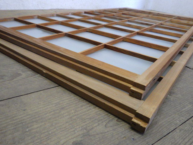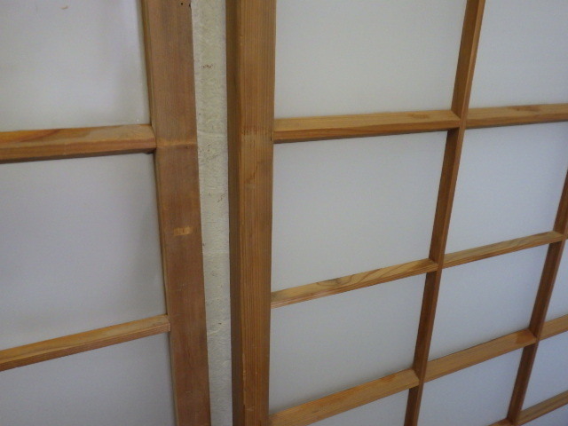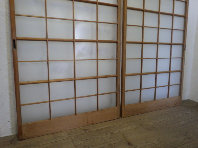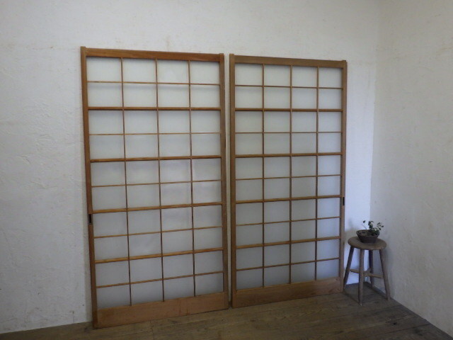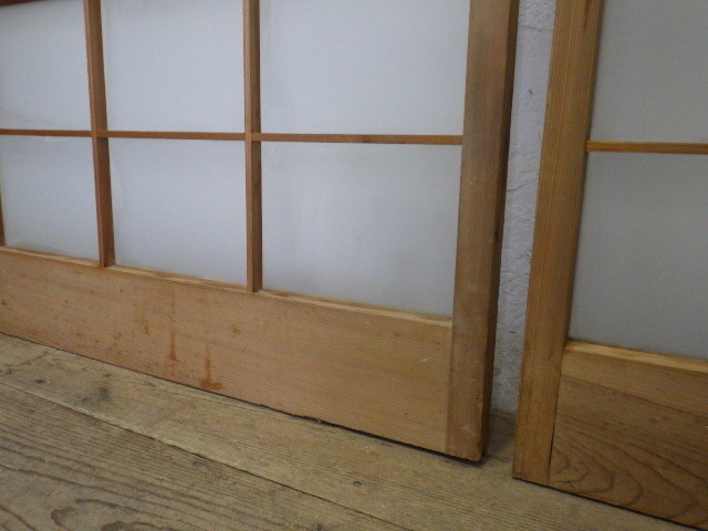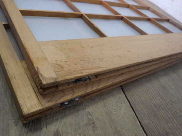 商品情報 | ■商品詳細■ レトロな古い木製ガラス戸、2枚セットです。 長年使い込まれた味わいのある品です。 ガラスは、曇りガラスを使用しています。 一般のご家庭はもちろん、レトロな店舗什器にもお勧めです。 経年の傷や欠け、染み等がありますが、使用には問題ありません。 ガラスにヒビや割れはありません。 古い物とご理解いただければ幸いです。 ◆別カテゴリーにて同じデザインの品(S842)を出品していますので まとめてご希望の場合は、ストア内検索で上記の管理番号を検索して頂ければと思います。 売買済みの場合はご了承下さい。 ご不明な点などありましたら、質問欄にてお願いします。 ■サイズ■ 全体(最大値) (H 176cm×W 90,5cm×D 3cm)×2枚 竪框 3cm 多少の誤差はご了承下さい。 |