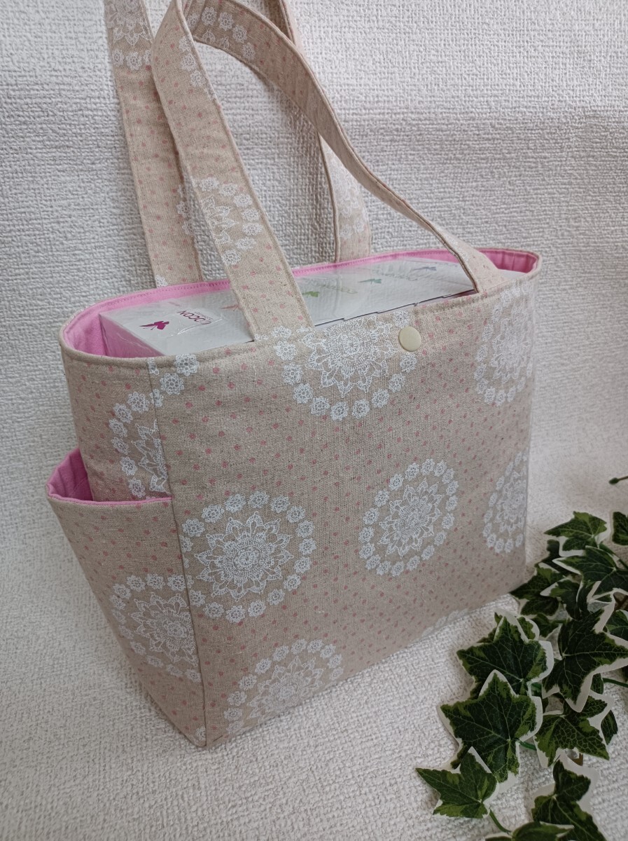 | ハンドメイド サイドポケット付きトートバッグ 肩掛け | |||