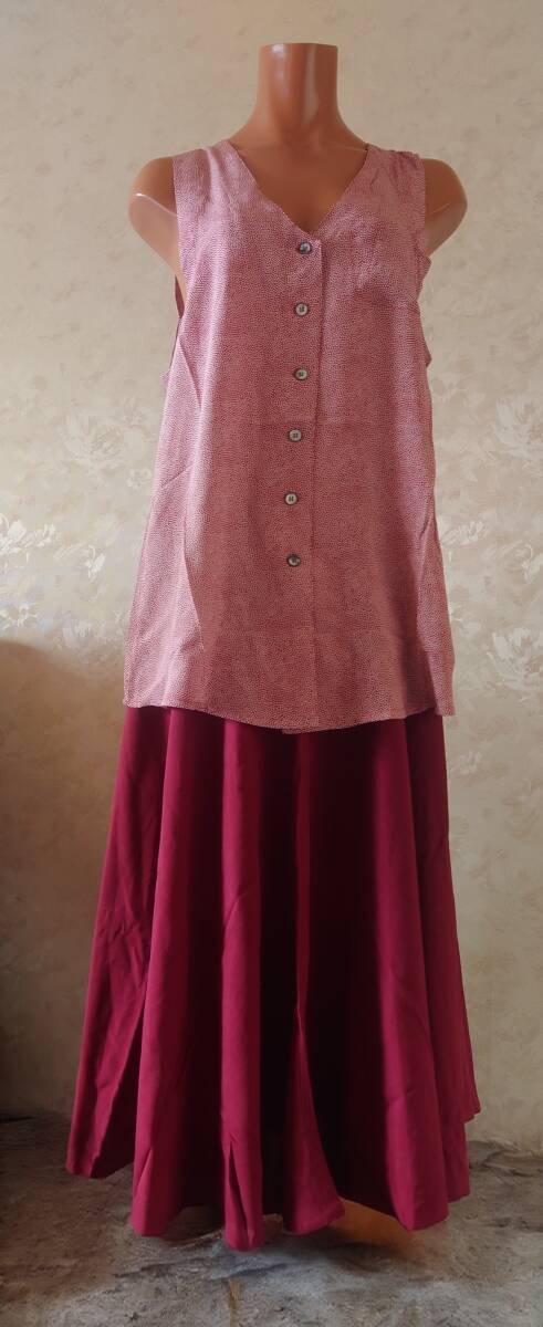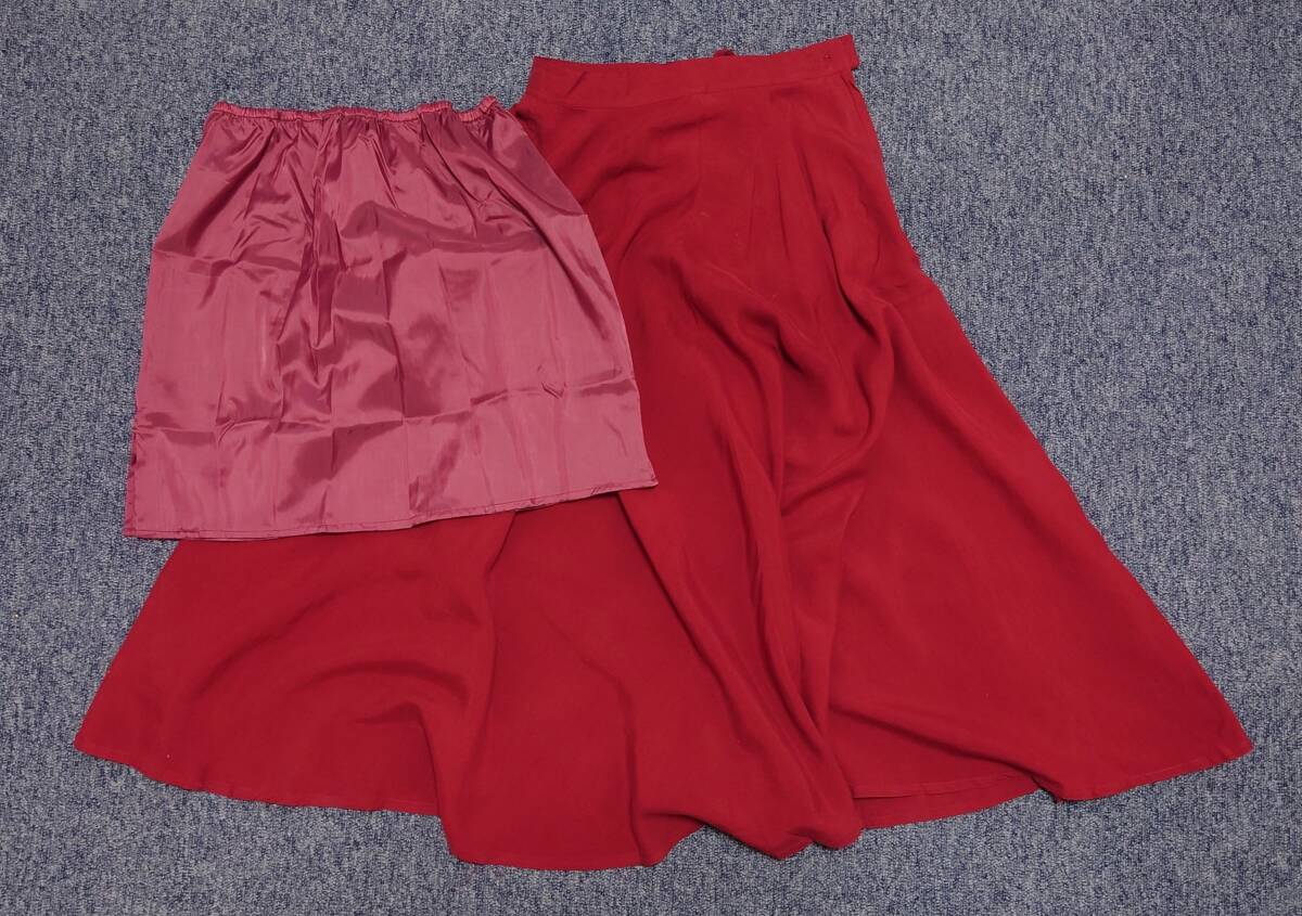 ■【新品・未使用】夏は涼しいシルク100% レディース ロングスカート Mサイズ W65cm エンジ ペチコート付■ブランド:jasmi SILK ジャスミ シルク
